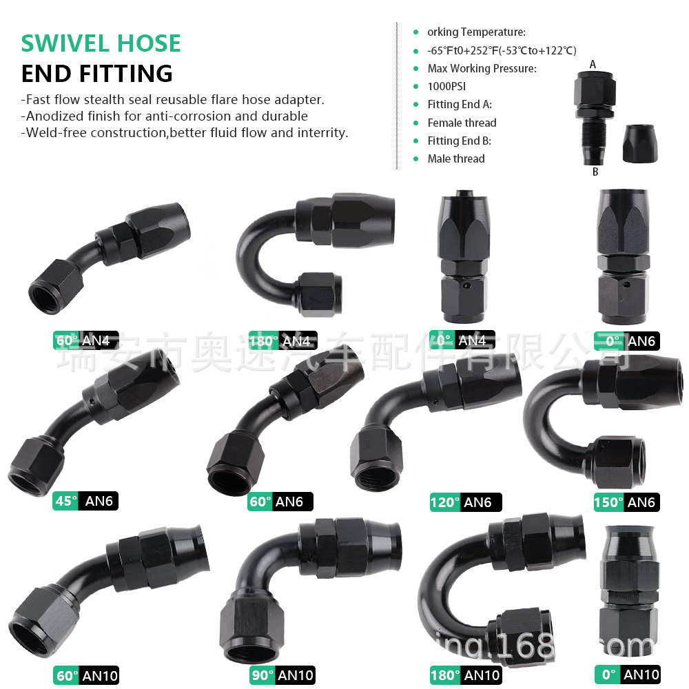 Oil Cooling Joint Car Modified Oil Pipe Joint AN80°-180°Aluminum Alloy Fuel Hose Rotary Joint