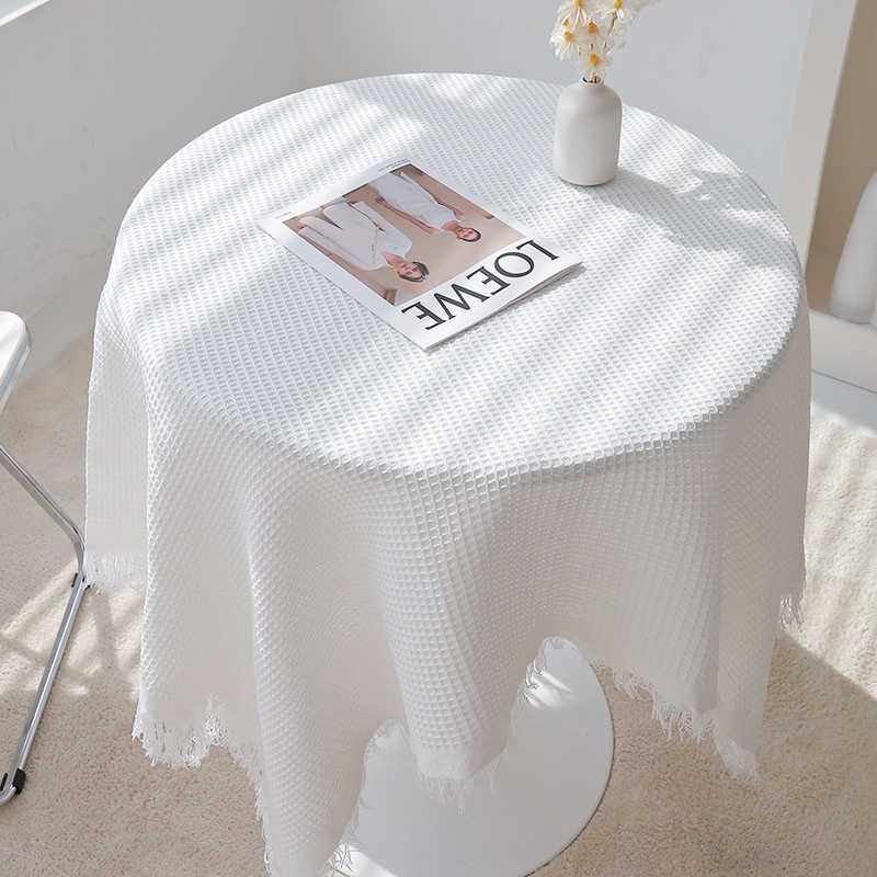 Nordic French Style High-end Round Cotton And Linen White Lace Tablecloth Rectangular Coffee Table Tablecloth