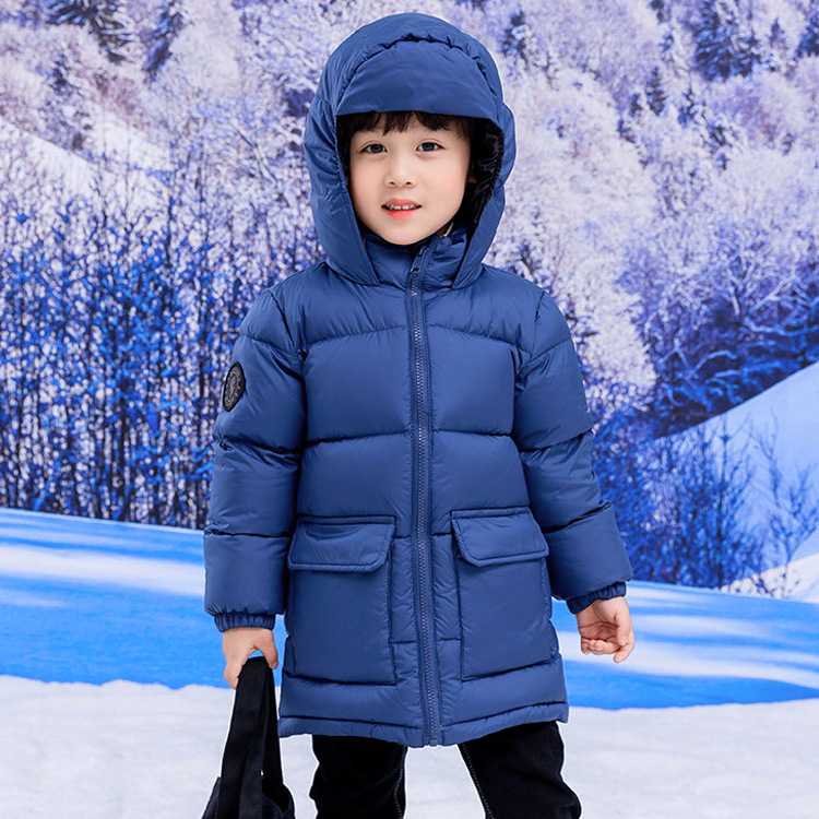 Children's Down Jacket Thickened Mid-length Hooded Jacket For Boys And Girls,Medium And Large Children's White Duck Down Winter Hooded Jacket