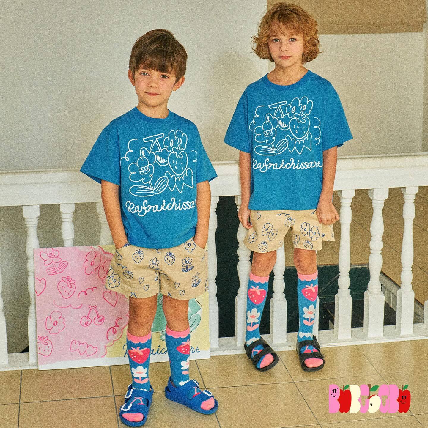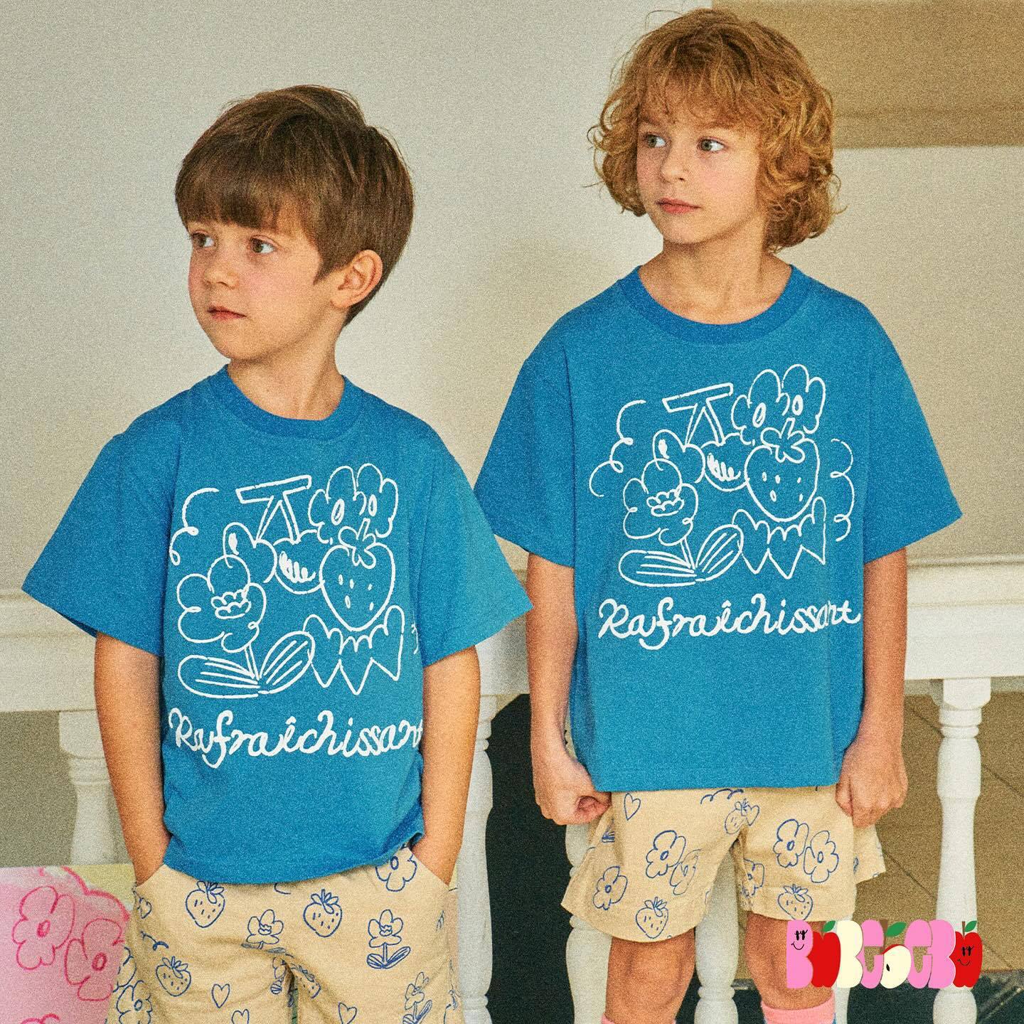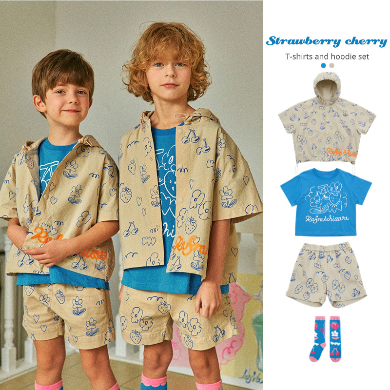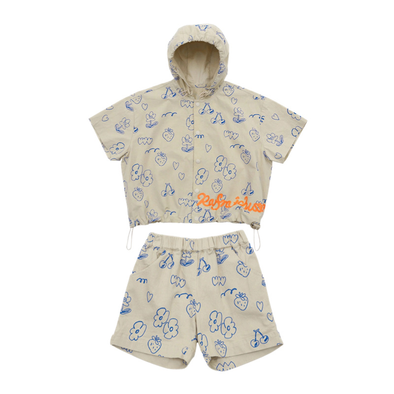 Summer Korean Style Children's Suit Boys And Girls Cartoon Cute Cotton T-shirty Full Print Hoodie Shorts