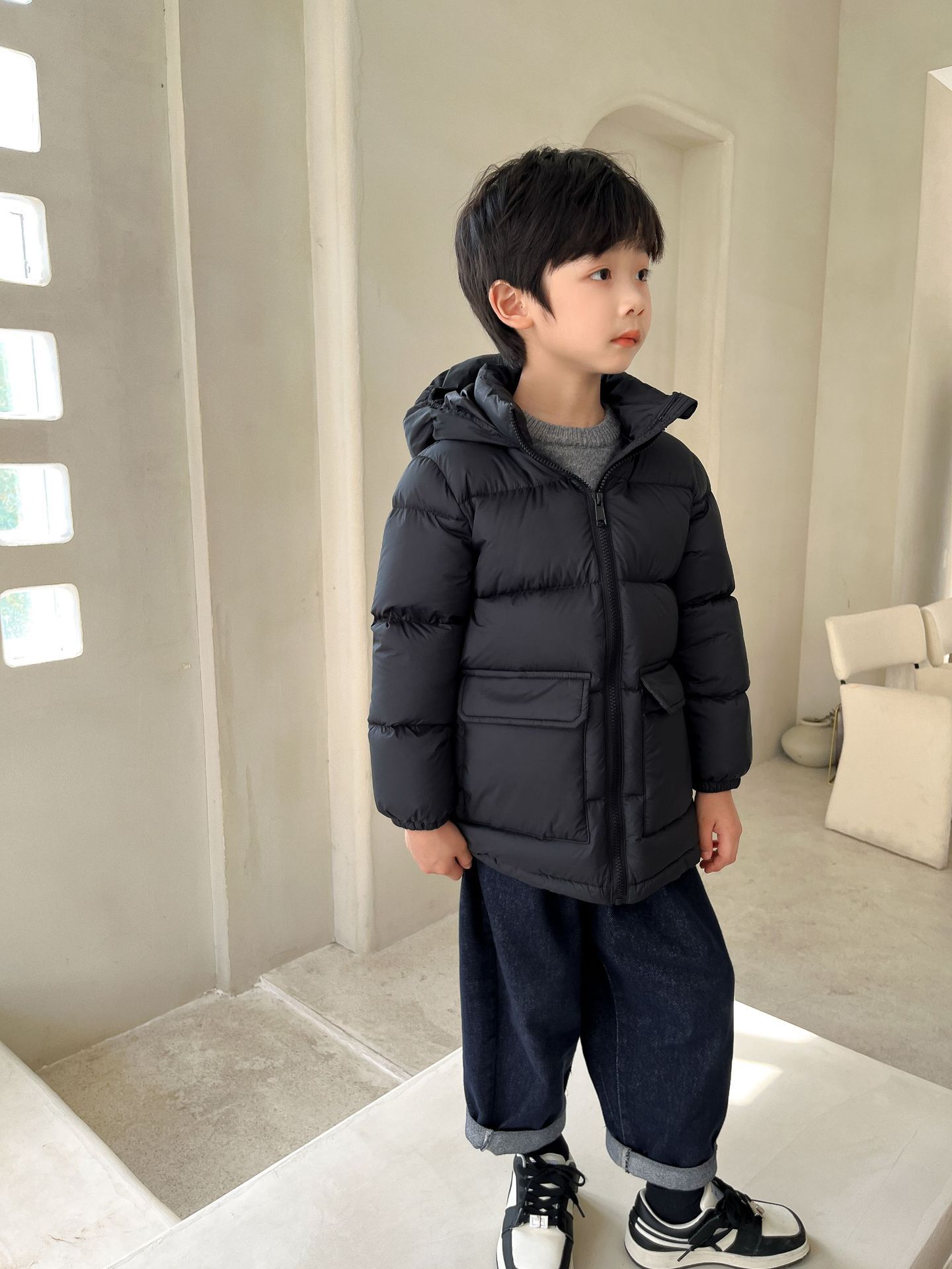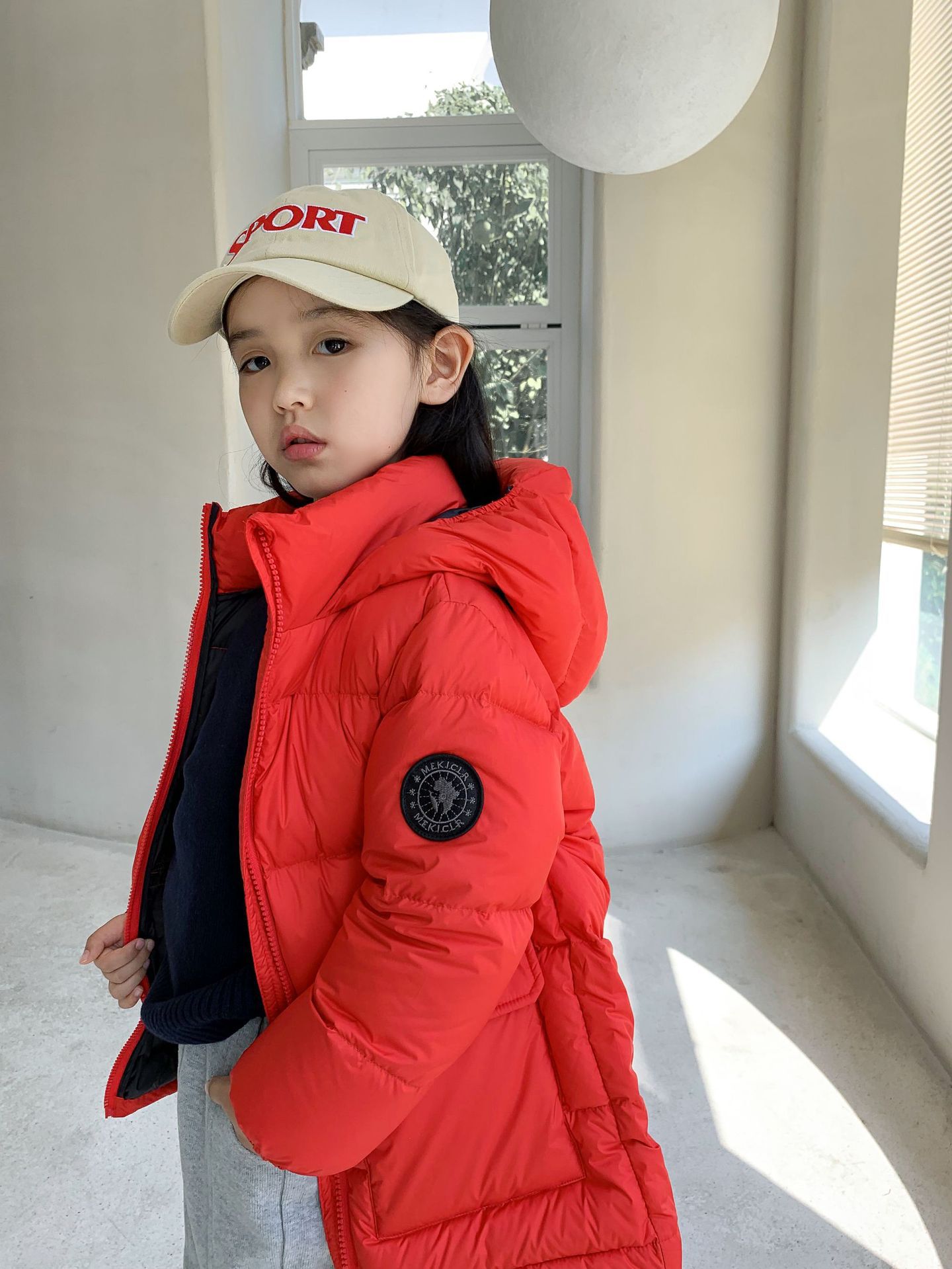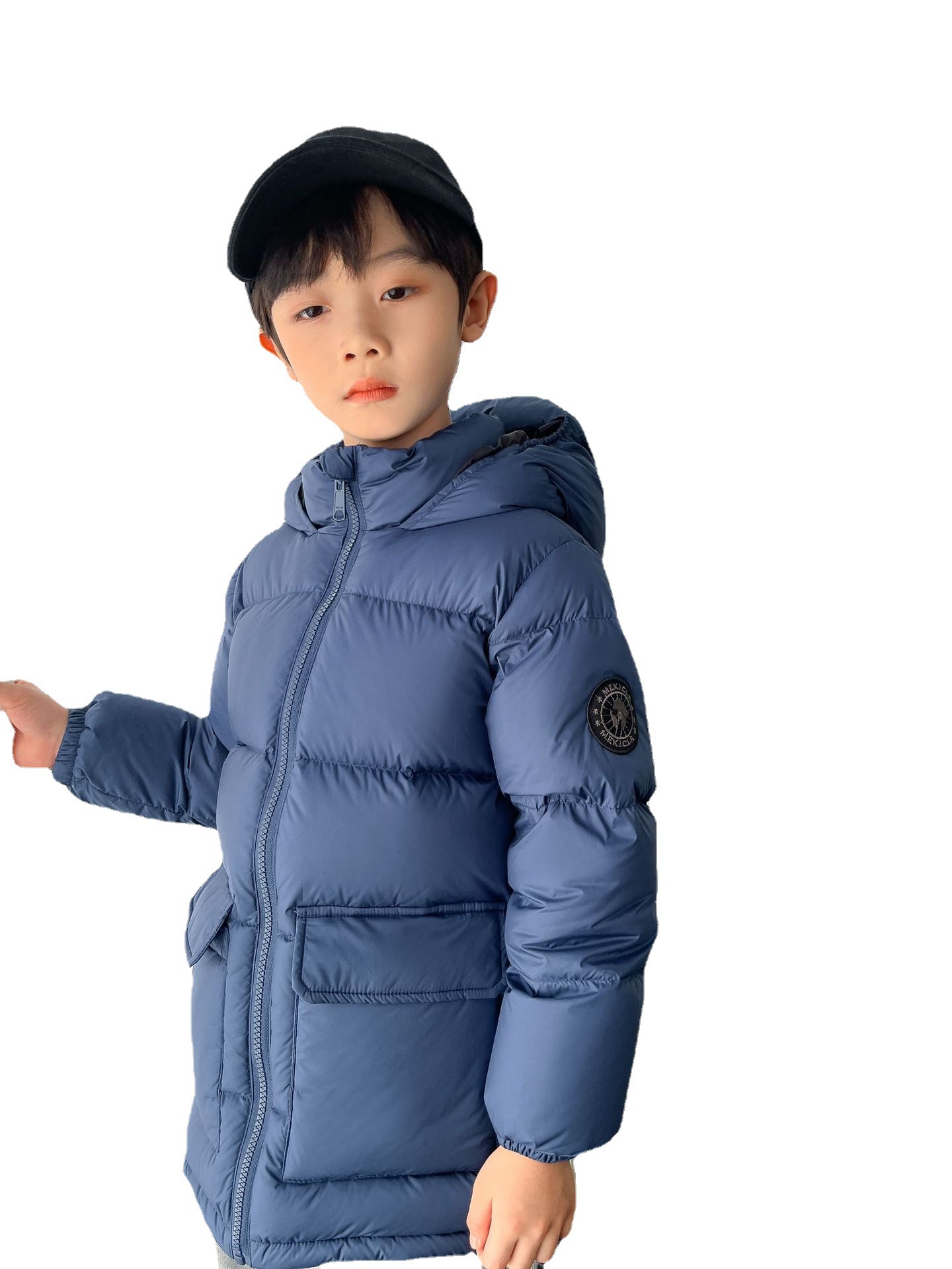 Thickened Style White Duck Down Jacket For Middle-aged And Older Children,Boys And Girls,Lei Feng Hat,Mid-length Winter Coat