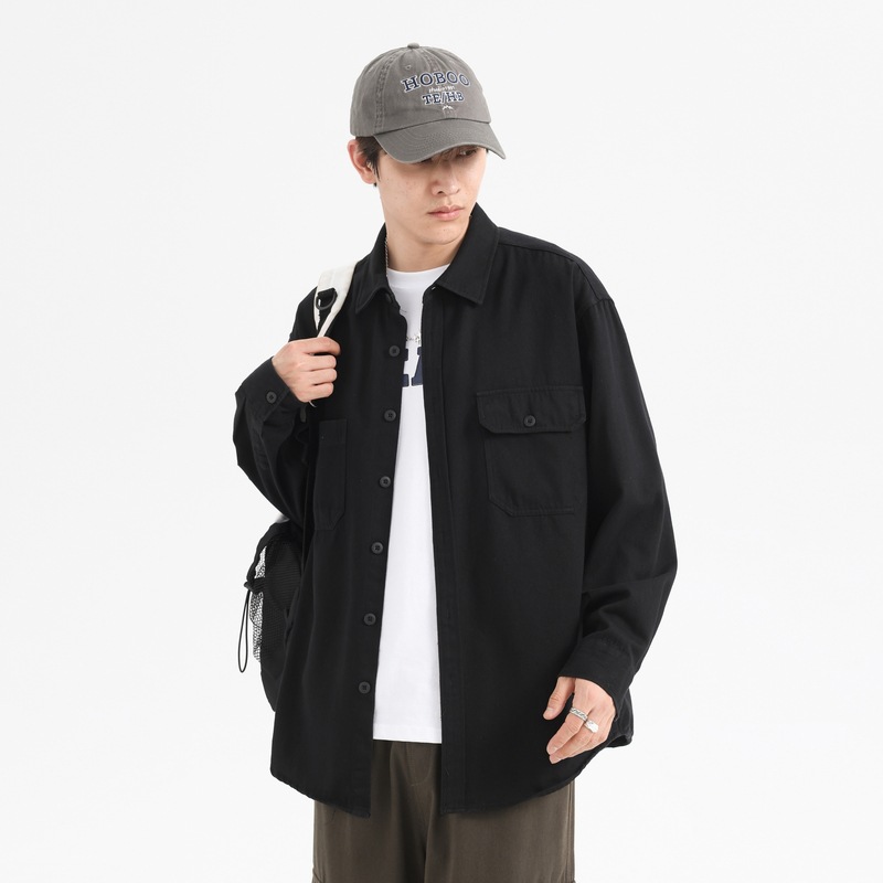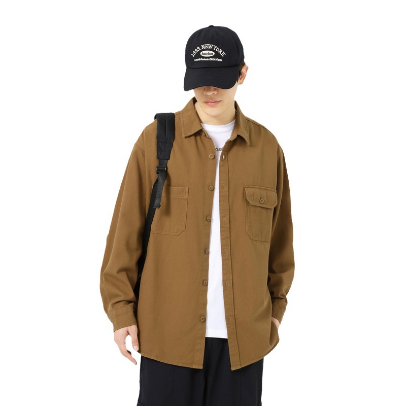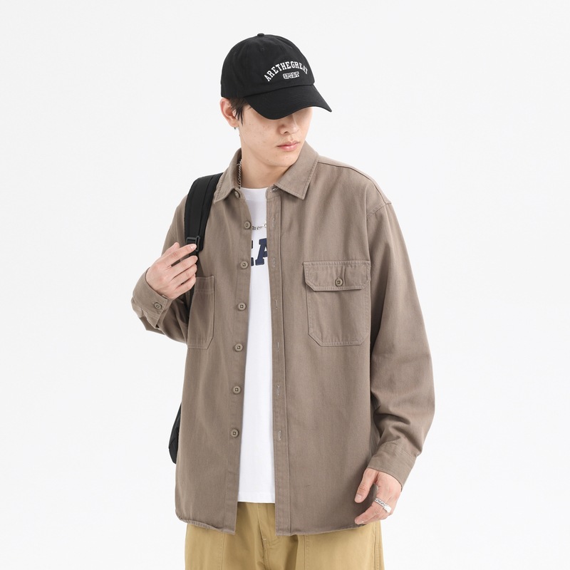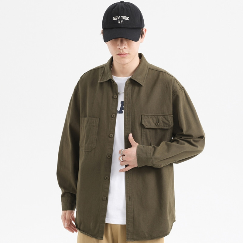 Shirts For Men Spring And Autumn Oxford Spun Cotton Men's Hong Kong Style Double Pockety Loose Casual Men's Shirts