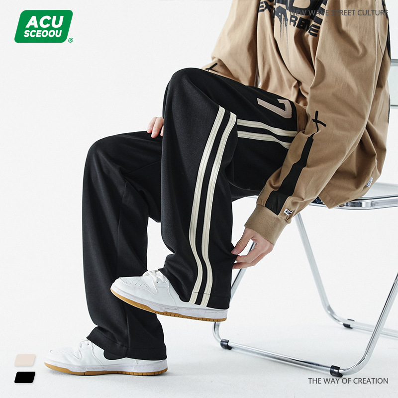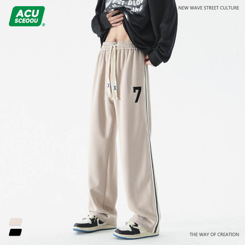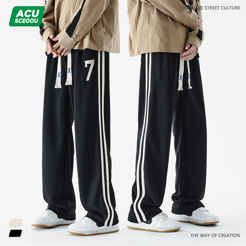 ACUMen's Wear|Autumn Digital Embroidered Side Stripe Straight High Street Thin Sports Drawstring Sweatpants For Men