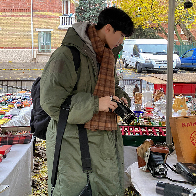 MYQCotton Coat Men's Medium-length Coat Korean Styley Loose Thickened Cotton Coat High-end Winter Cotton Padded Jacket