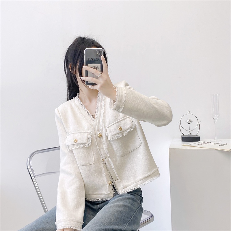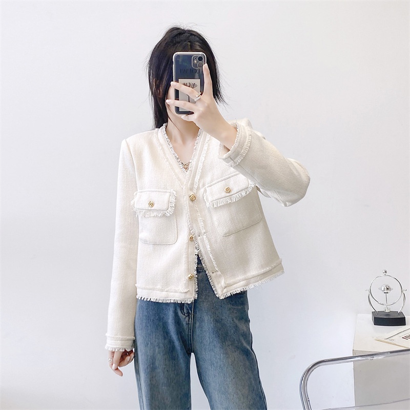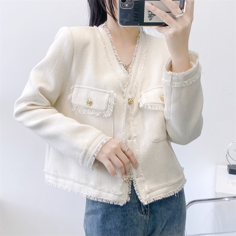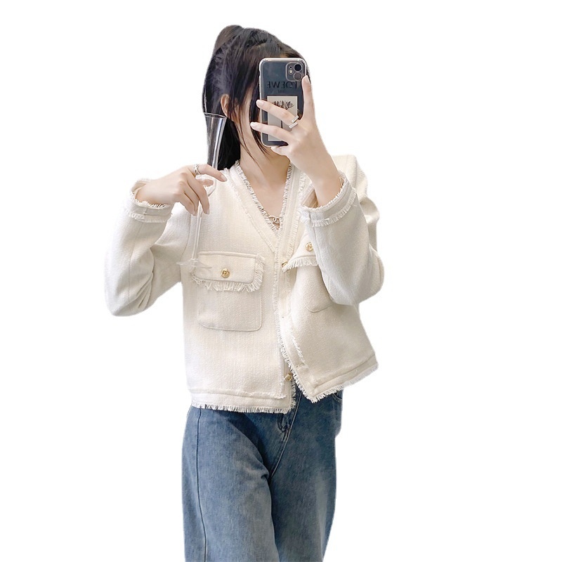 Miss Korean V-neck Tassel Autumn And Winter Small Fragrant Style Jacket With Temperament And Western Style Cardigan Top Petite Woolen Jacket