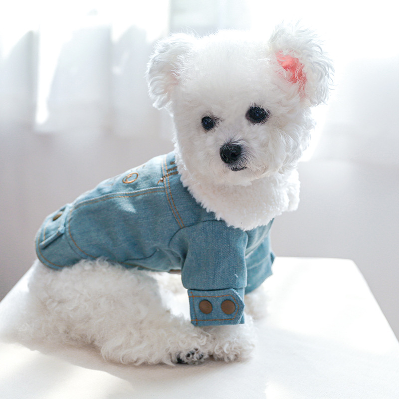 Popular Pet Dog Clothes Autumn And Winter Plus Velvet And Thickened Denim Cotton Coat One Piece Drop Shipping
