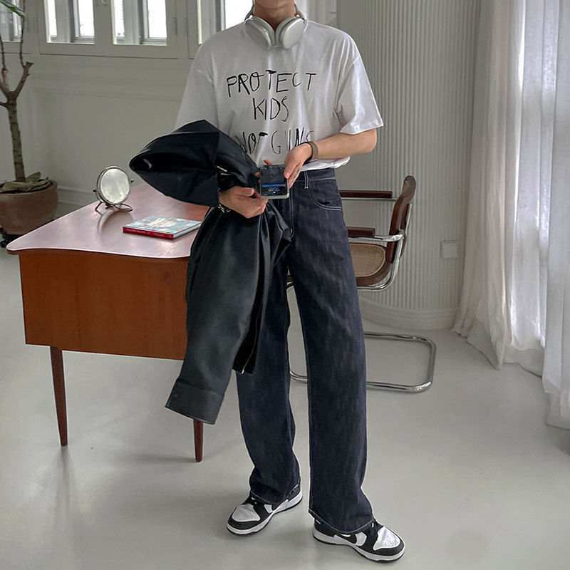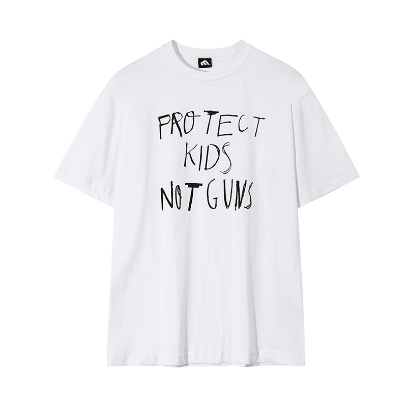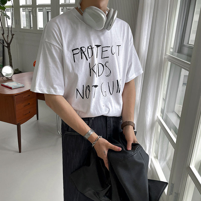 MYQRound Neck Short-sleeved T-shirt For Men In Summer Korean Style Loosey Graffiti Letter Printed Five-quarter Sleeve Cotton T-shirt