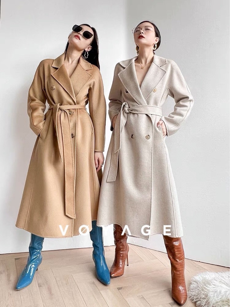 Classic Water Ripple Lapel Solid Color Loose Wool Wool Coat M Home Double-sided Wool Cashmere Jacket801