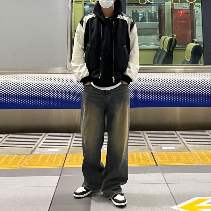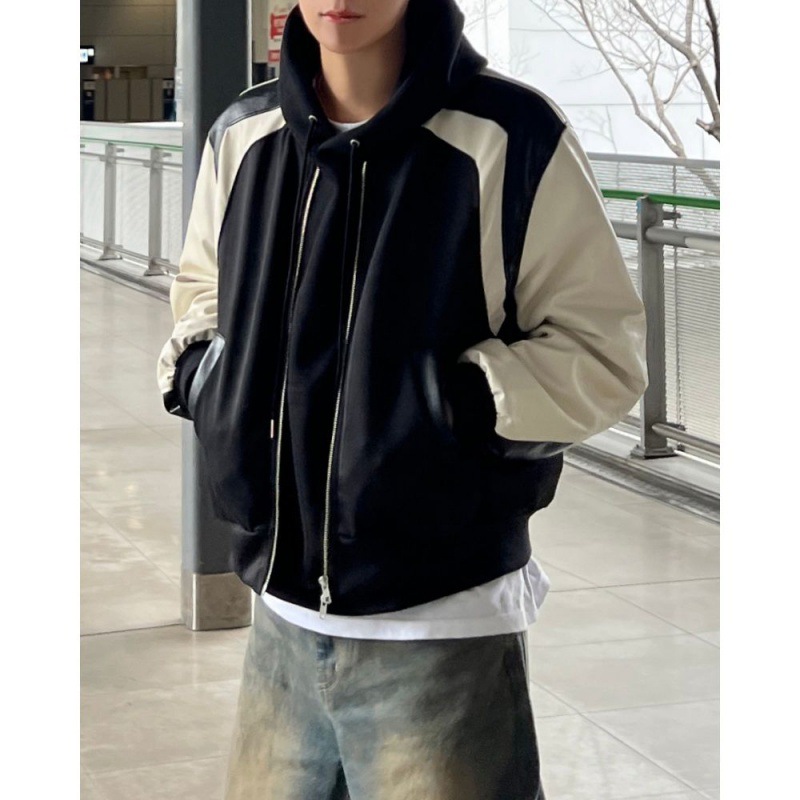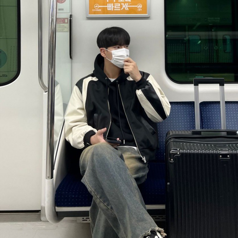 MYQDesign Niche Leather Jacket Men's Spring Loose Jacket Korean Styley Contrast Color Leather Jacket
