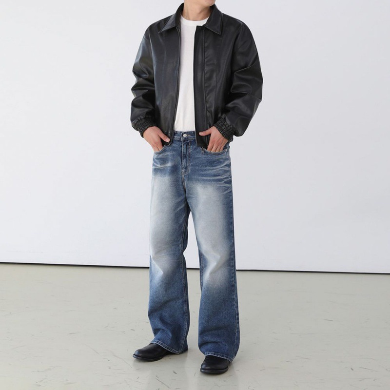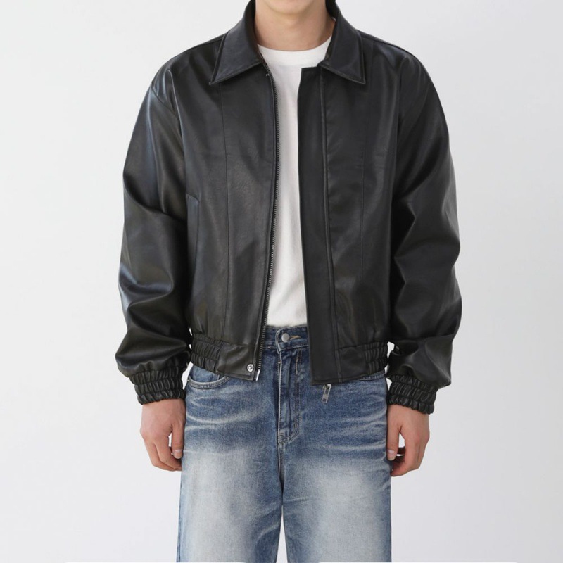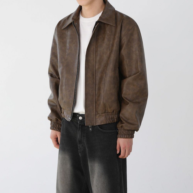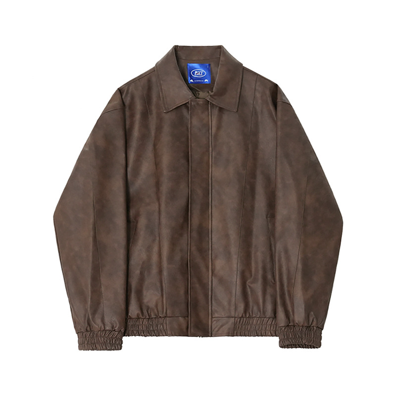 MYQHandsome Short Motorcycle Leather Jacket Men's Spring Maillard Style Coat Korean Style Loose Lapel Leather Jacket