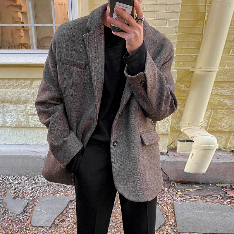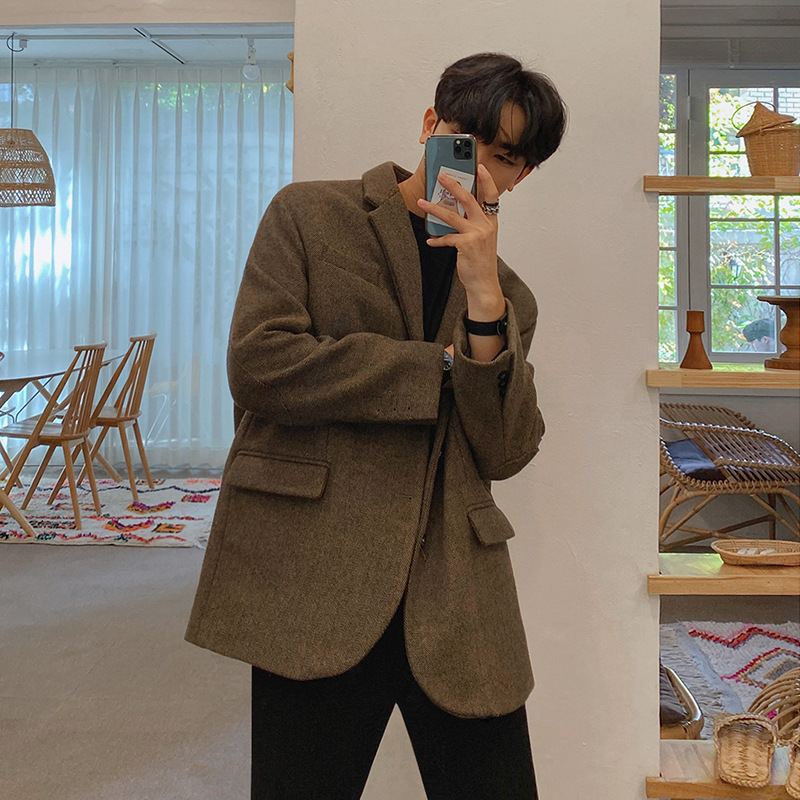 MYQCasual Suit Men's Spring And Autumn Korean Version Of The Loose Handsome Suit Shaggy Woolen Retro Jacket