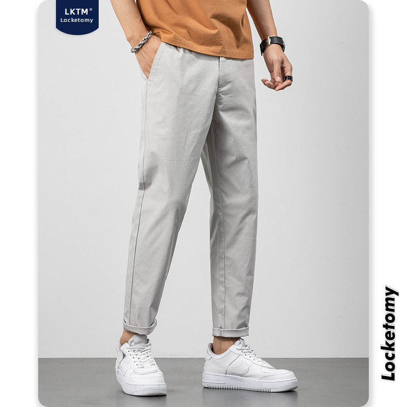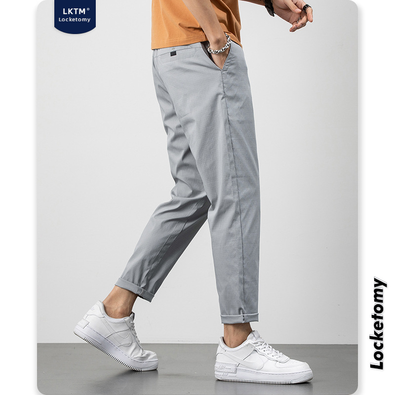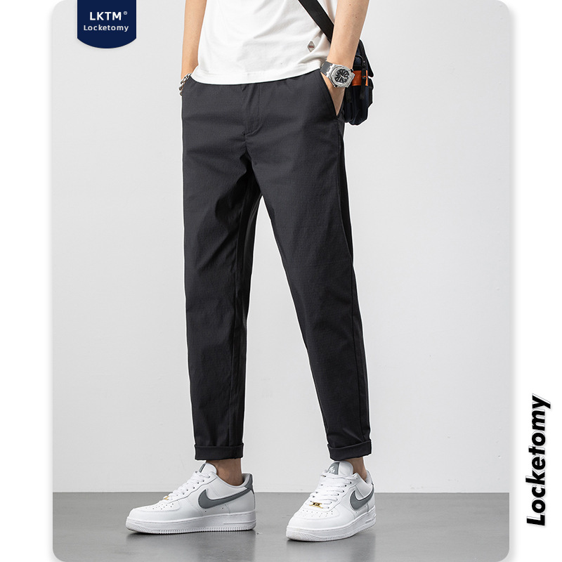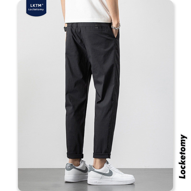 LKTMMen's Clothing#Autumn And Winter Casual Pants Men's Korean Styley Slim Black Straight-Tube All-match Student Nine-Point Pants