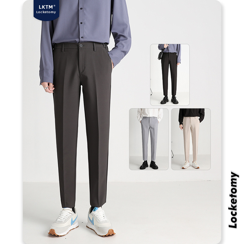 LKTMMen's Wear#Spring And Autumn Style Small Suit Pants Men'sy Slim Men's Dk Casual Pants Nine-Point Suit Pants