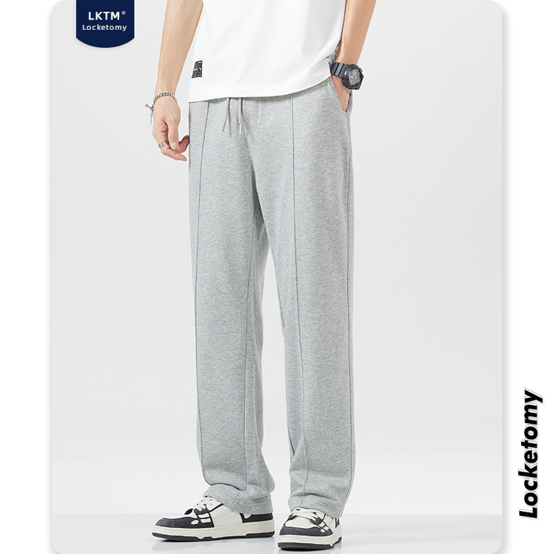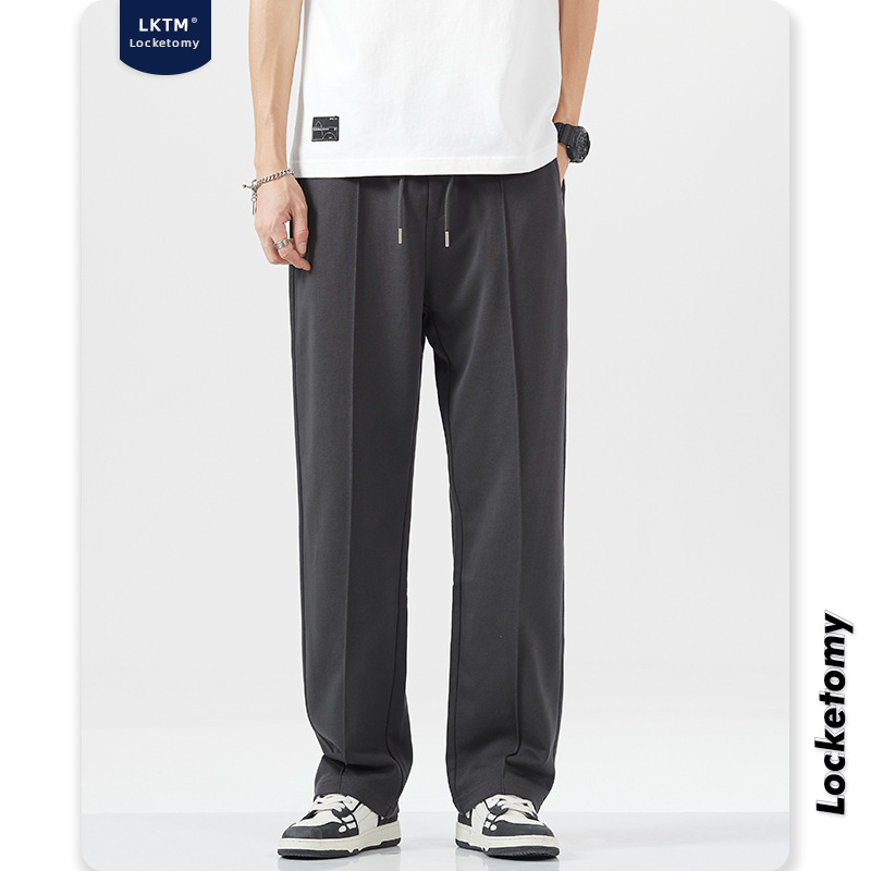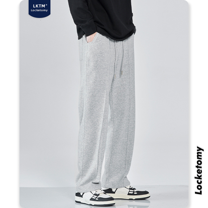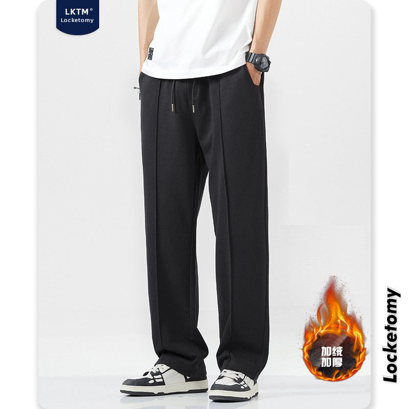 LKTMMen's#Autumn And Winter Plus Velvet Straight-leg Loose Sweatpants Men'sy Brand Drapey Wide-leg Sports Casual Trousers