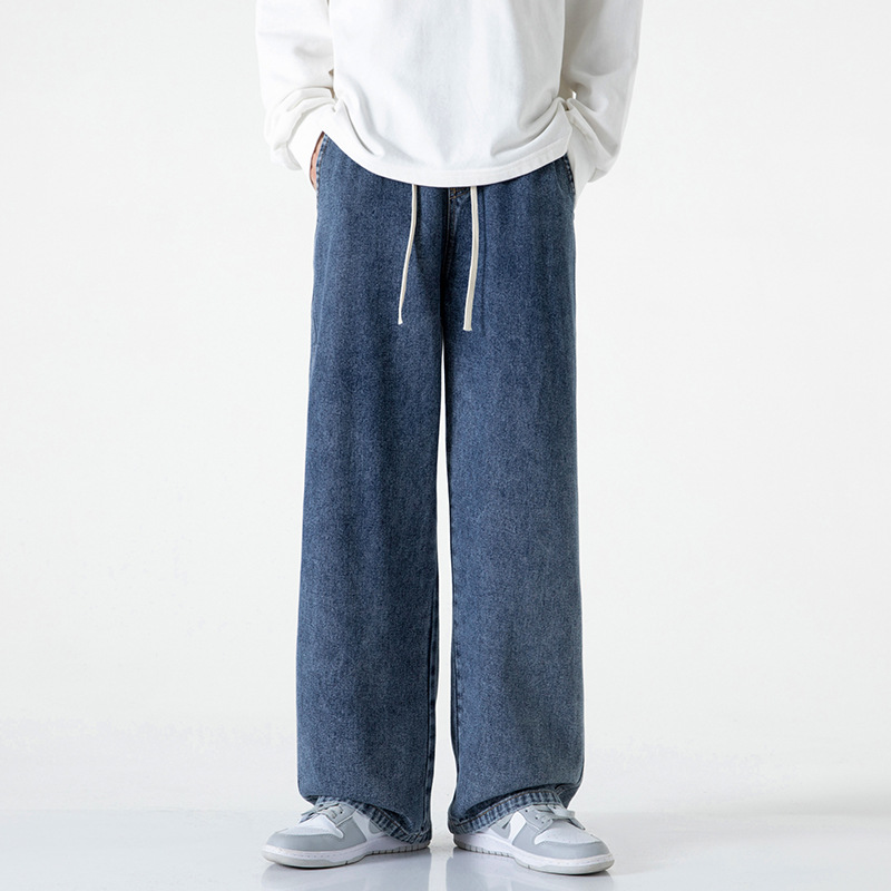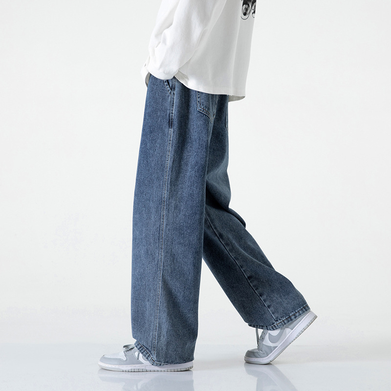 LKTMMen's Wear#Straight Simple And Versatile Blue And Gray Jeans Men's Fashion Brand Loose And Drapey Wide-leg Pants