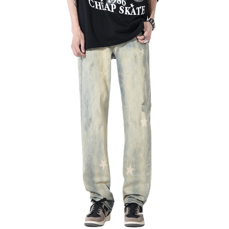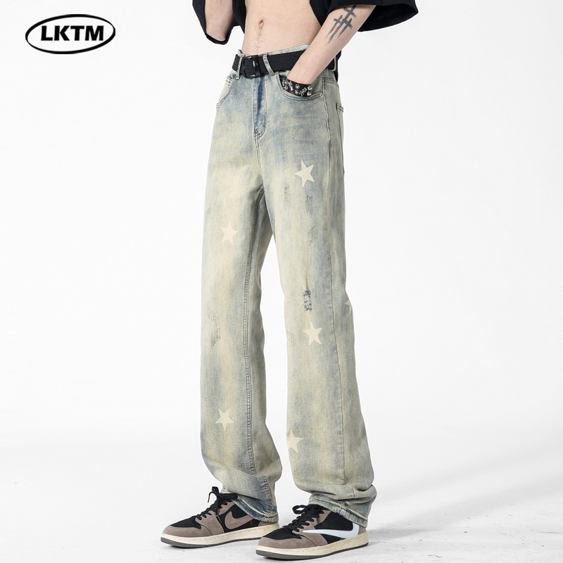 LKTMMen's Wear#Yellow Mud Star Jeans Men's Fashion Brand American High Street Design Straight Slim Long Pants