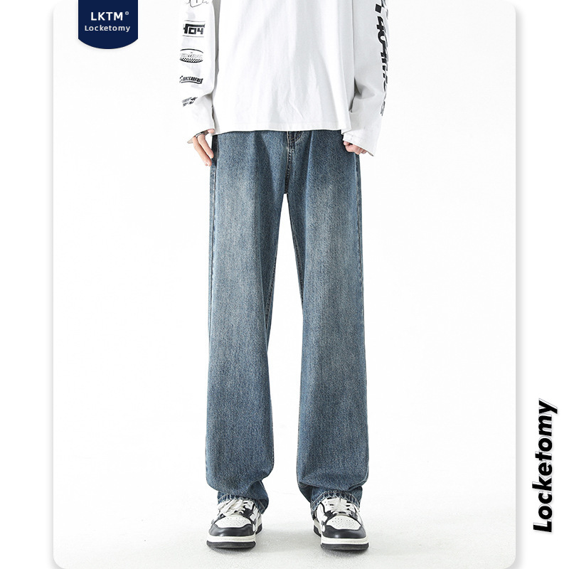 LKTMMen's Clothing#European And American Street Retro Jeans Men's Straight Loose Fashion Brand Drape Vib Youth Long Pants