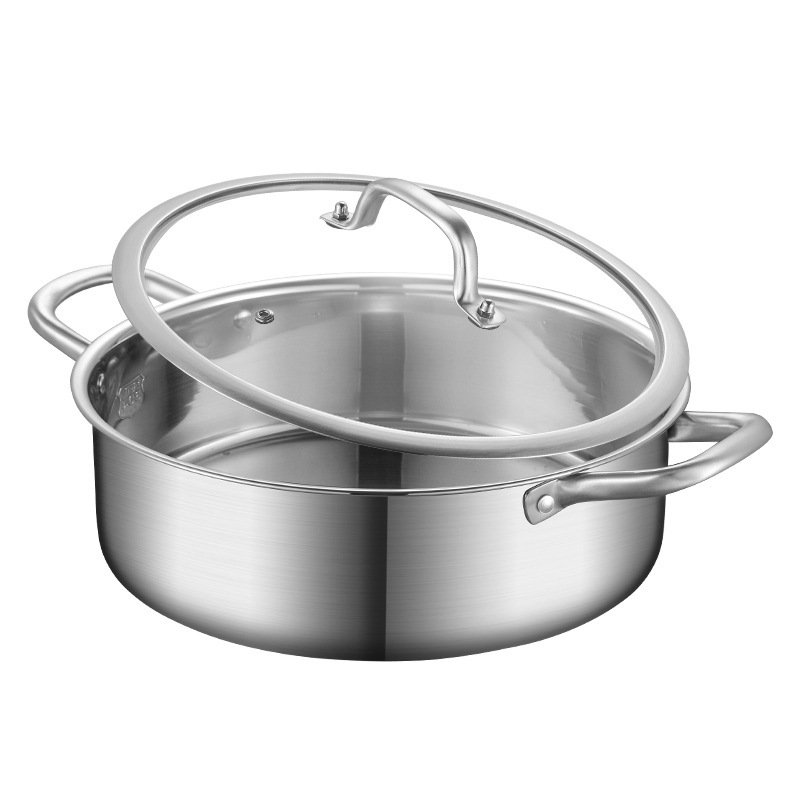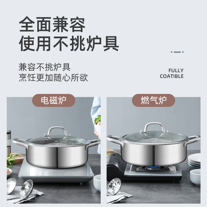 Yiboshi304 Hammer Pattern Clear Soup Pot Three-layer Steel Mandarin Duck Pot Large Capacity Shabu-shabu Hot Pot Induction Cooker With Lid Universal