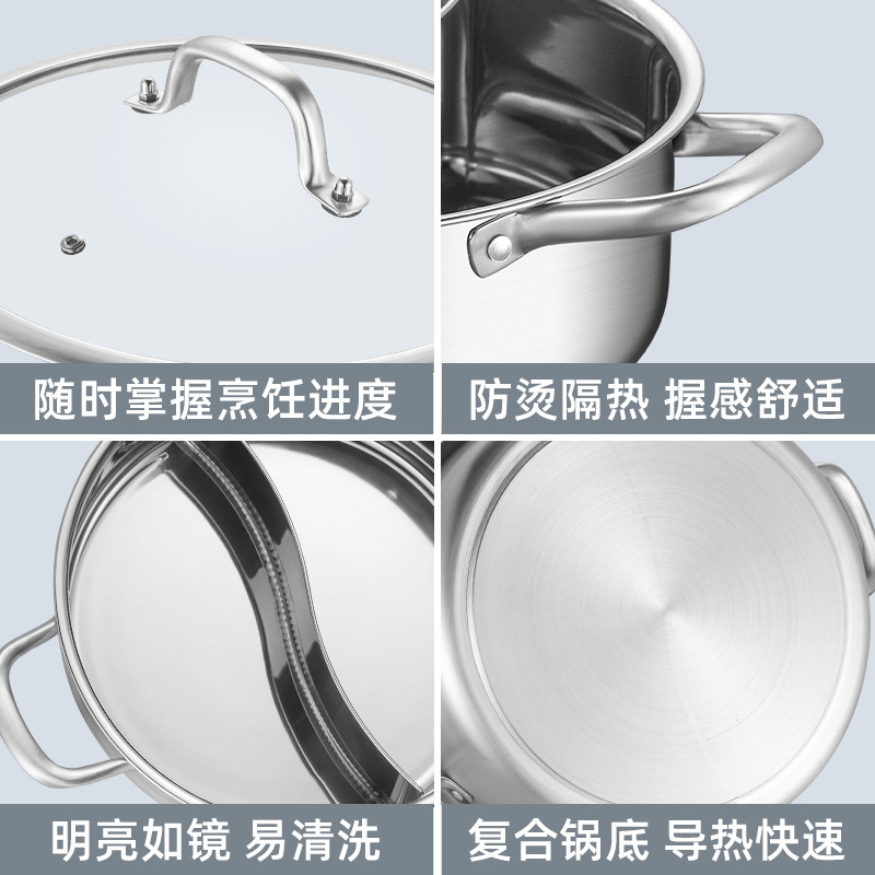 Hot Pot Specializes In Thickened Compound Bottom Mandarin Duck Pot,Seafood Pot,Clear Soup Pot,Household Hot Pot Basin,Stainless Steel Hot Pot