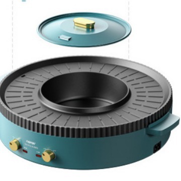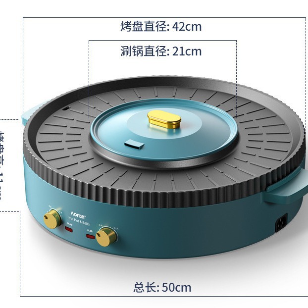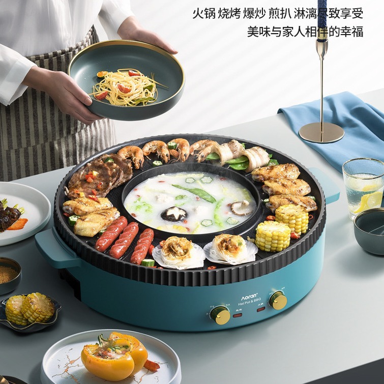 Popular Aoran European Standard Electric Barbecue Grill,Korean-style Non-stick Barbecue Pot,Multi-functional Dual-purpose Electric Hot Pot,Shabu-grilling All-in-one Pot