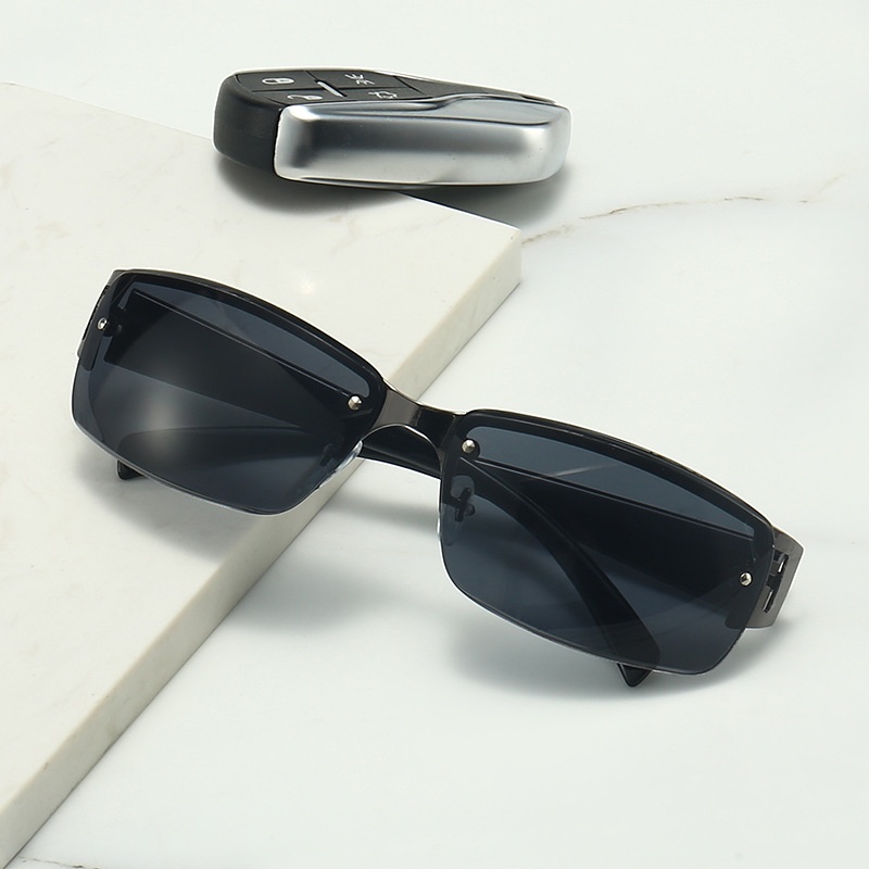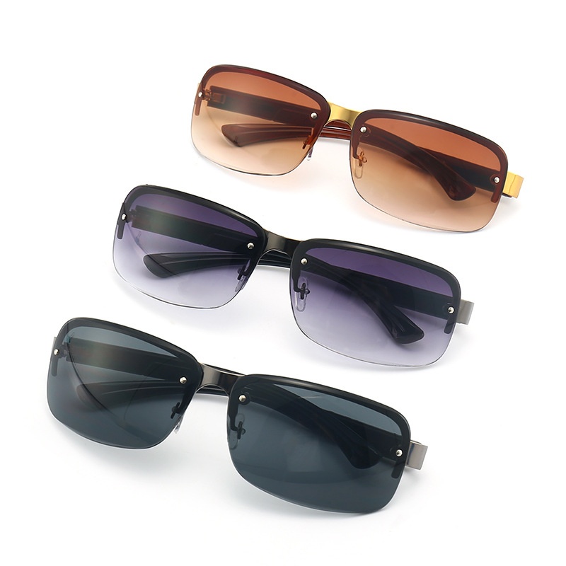 Style Simple Square Frame Sunglasses,y Driver's Simple Gradient Sunglasses, Half-frame Men's Driving Sunglasses
