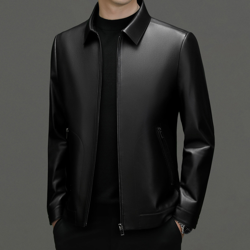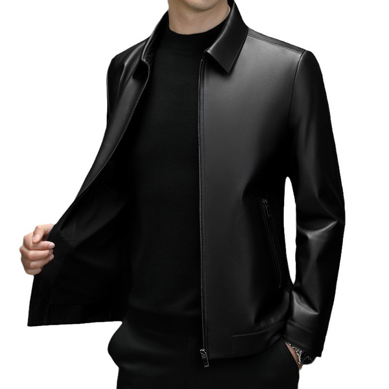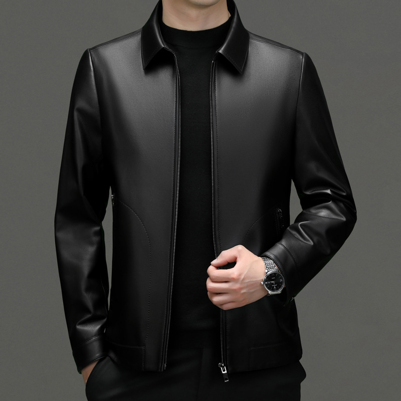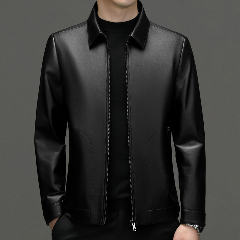 Autumn And Winter Men's Sheepskin Leather Jackets For Middle-aged And Young Business Casual Lapel Leather Jackets For Men