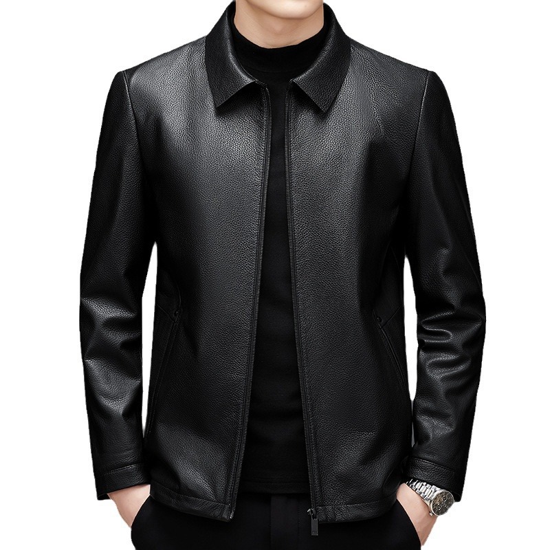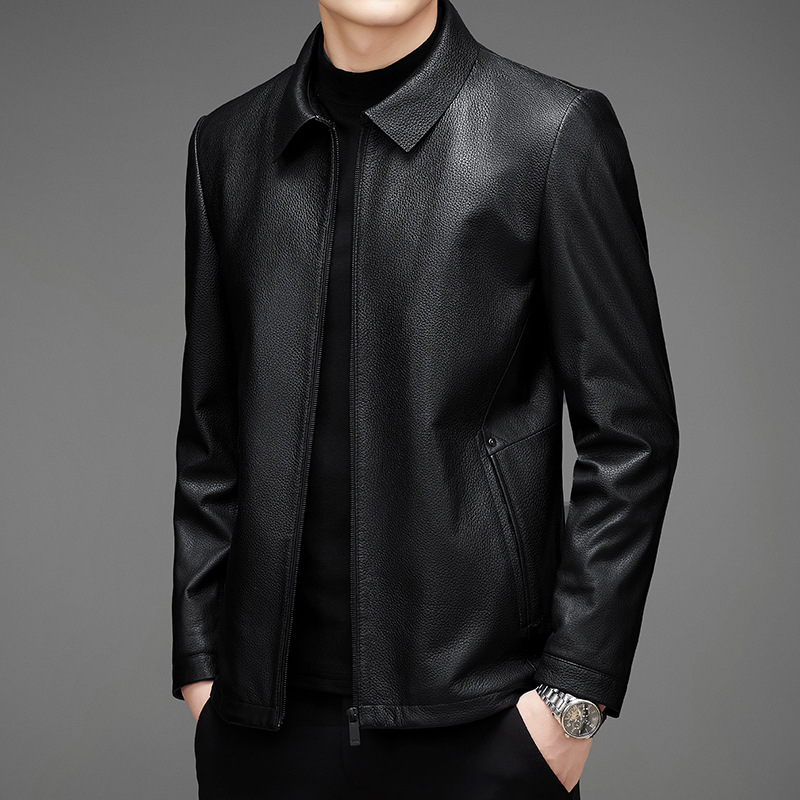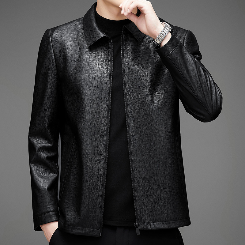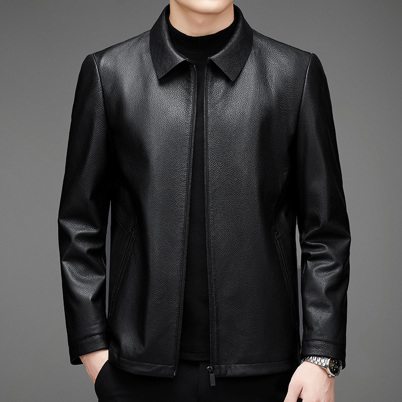 Haining Deerskin Genuine Leather Jacket For Men Youth High-end Lapel Business Casual Leather Jacket Direct Sale