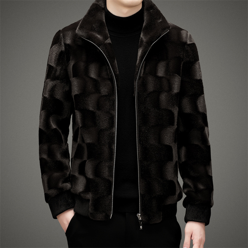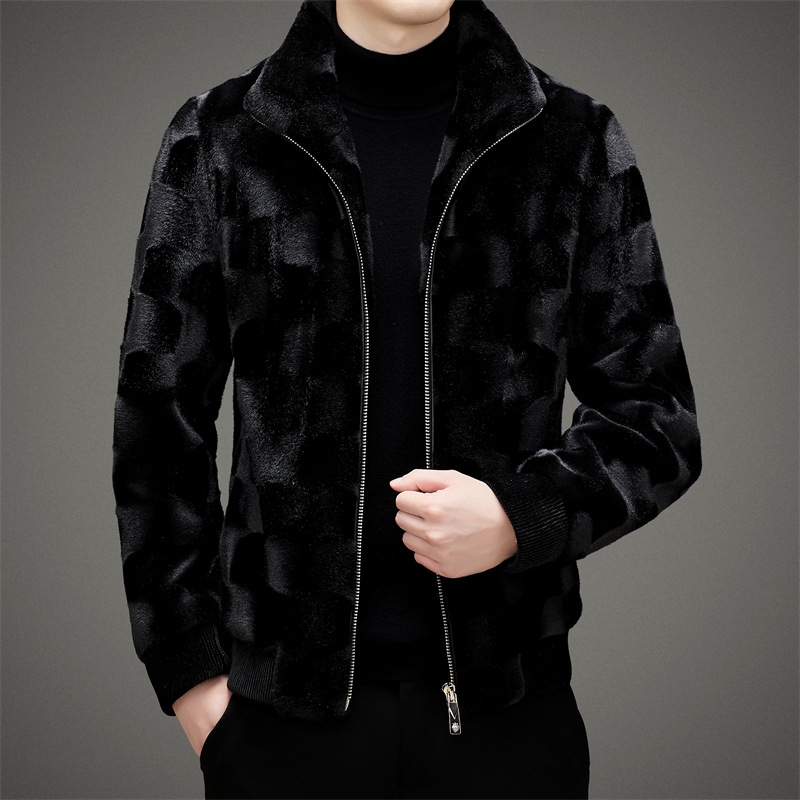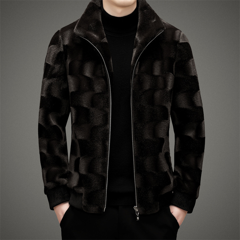 Men's Winter Tiger Pattern Thickened Mink Velvet Coat Youth Fashion Lapel Winter Warm Jacket