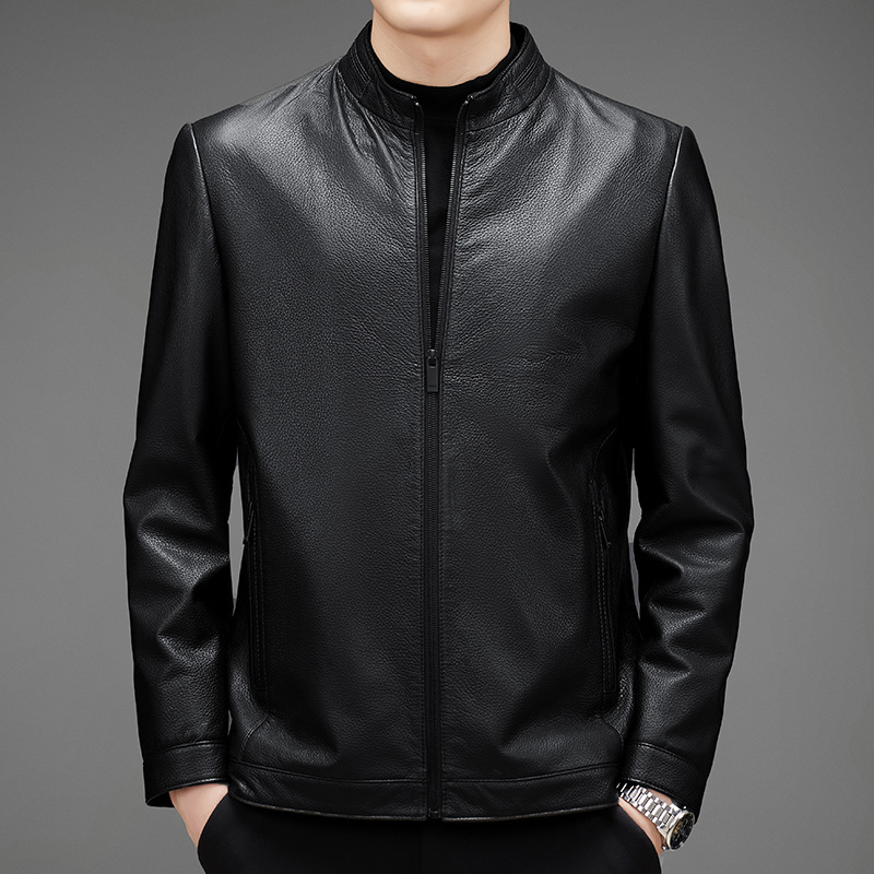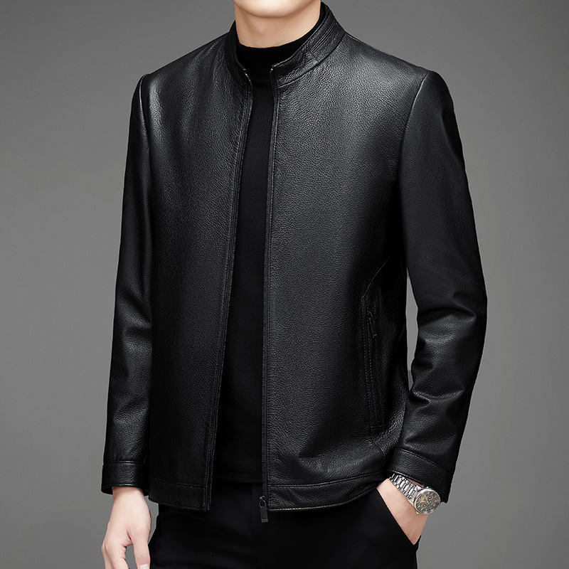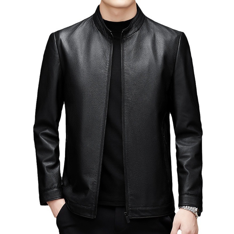 Haining Leather Men's Genuine Leather First Layer Sheepskin Fashion Casual Young And Middle-aged Stand Collar High-End Men's Jacket