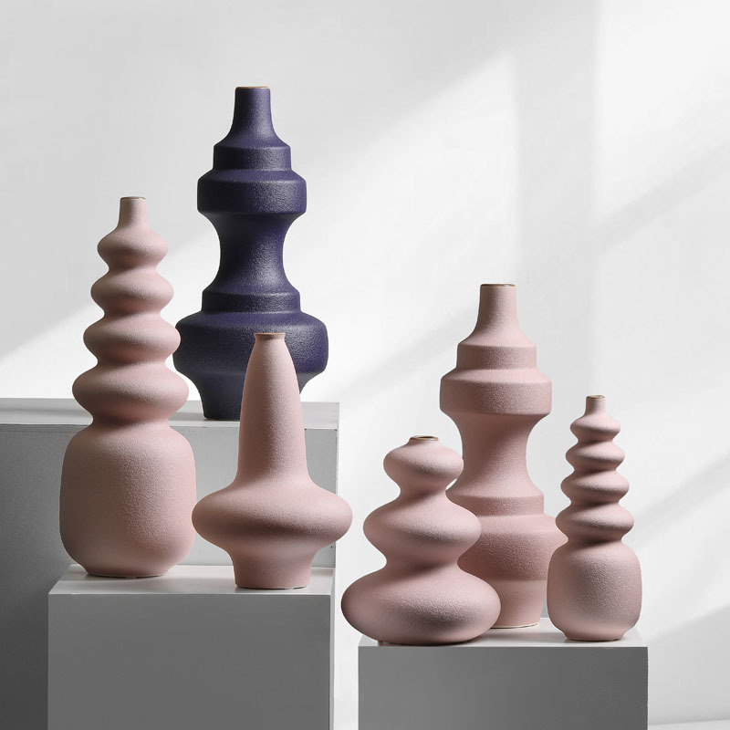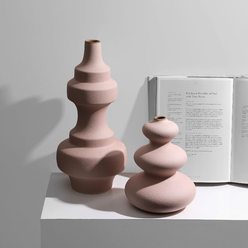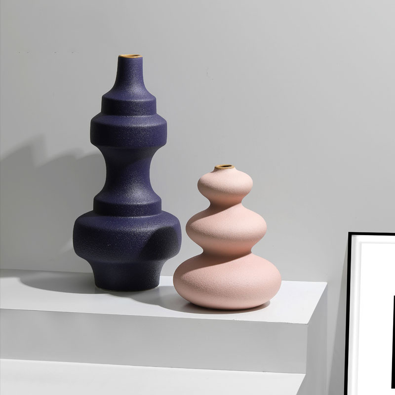 Nordic Art Small Mouth Ceramic Vase Ornaments Flower Arrangement Creative Living Room Table Top Home Decoration Threaded Flower Container