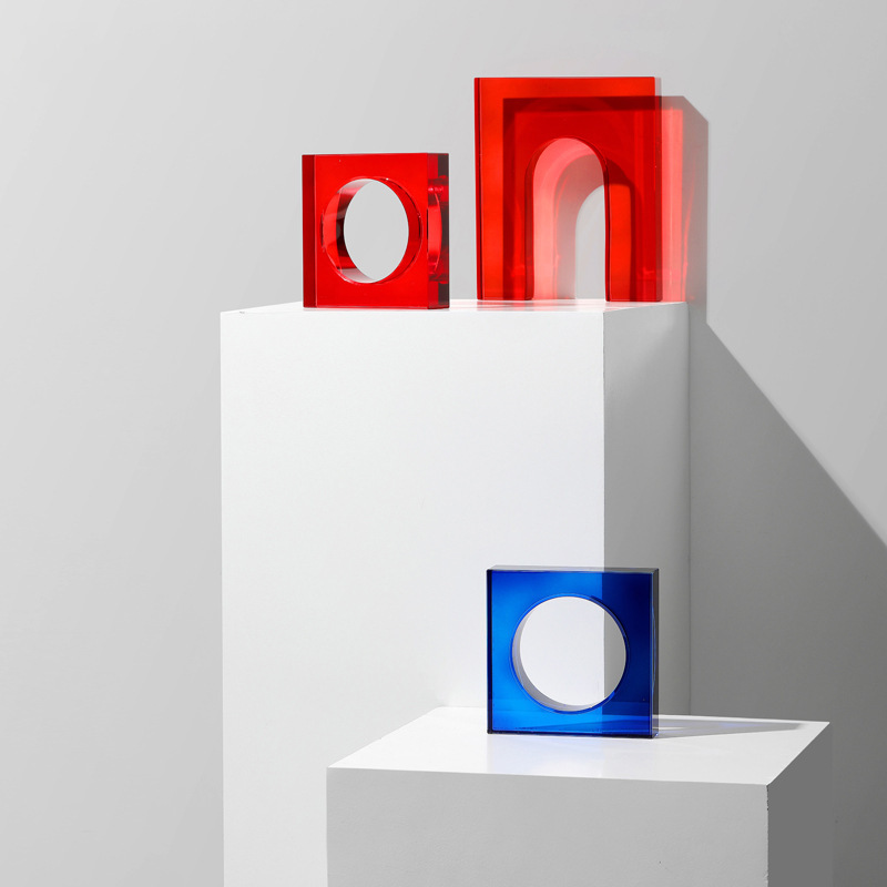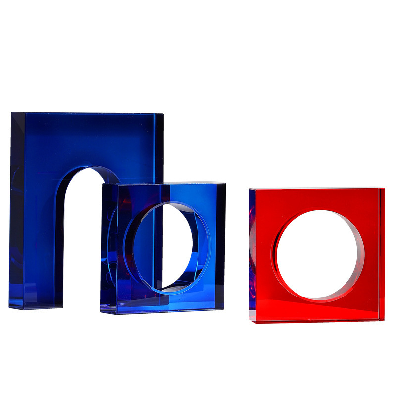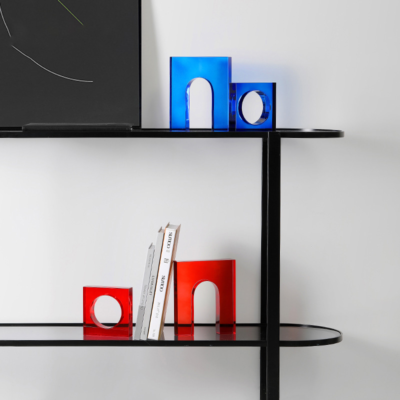 Modern Simple Blue Transparent Crystal Geometric Ornaments Bookends And Bookrests For Model Room Office Desktop Soft Decorations