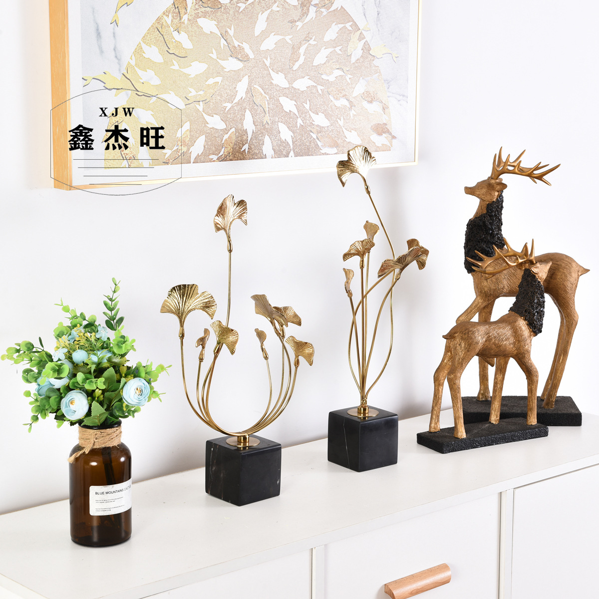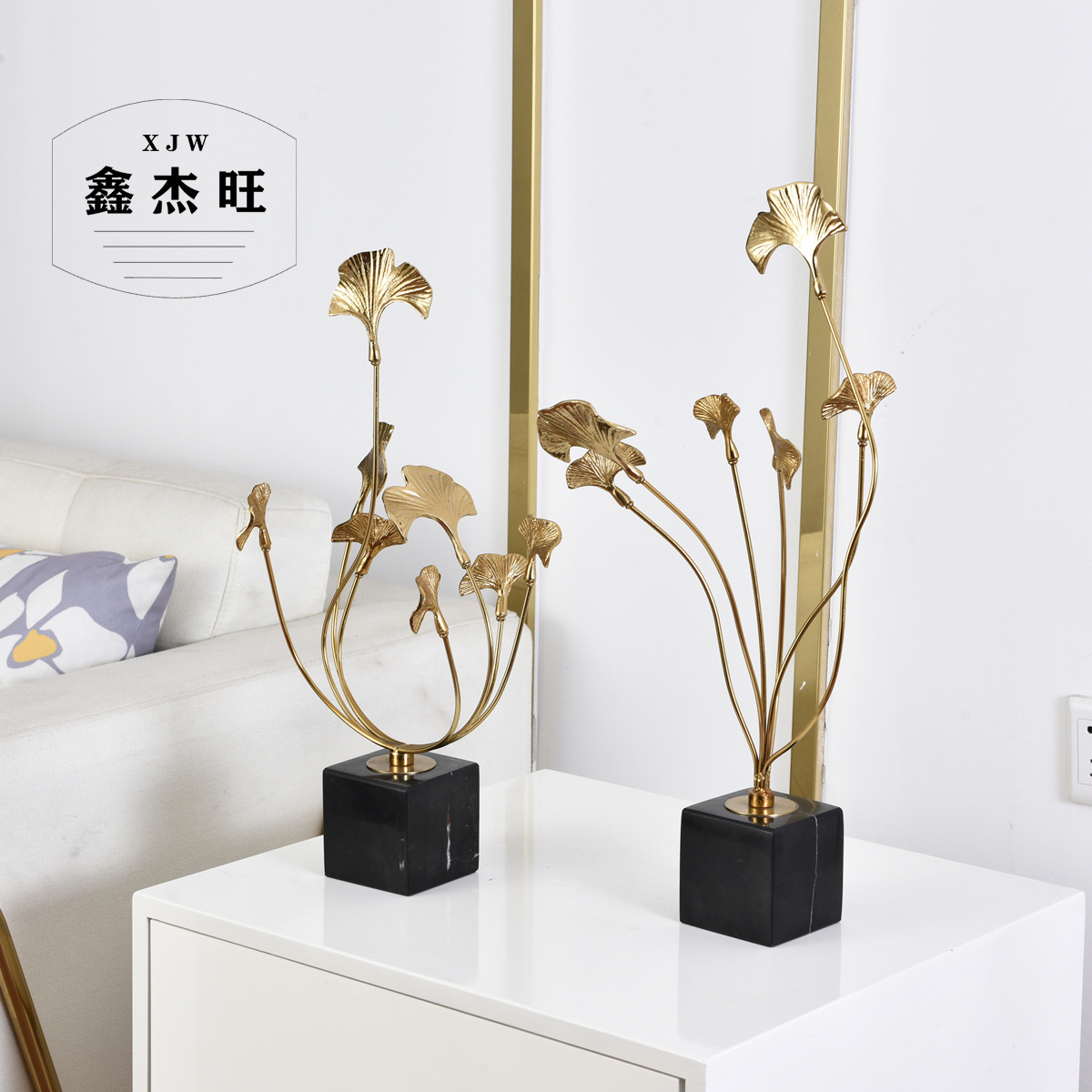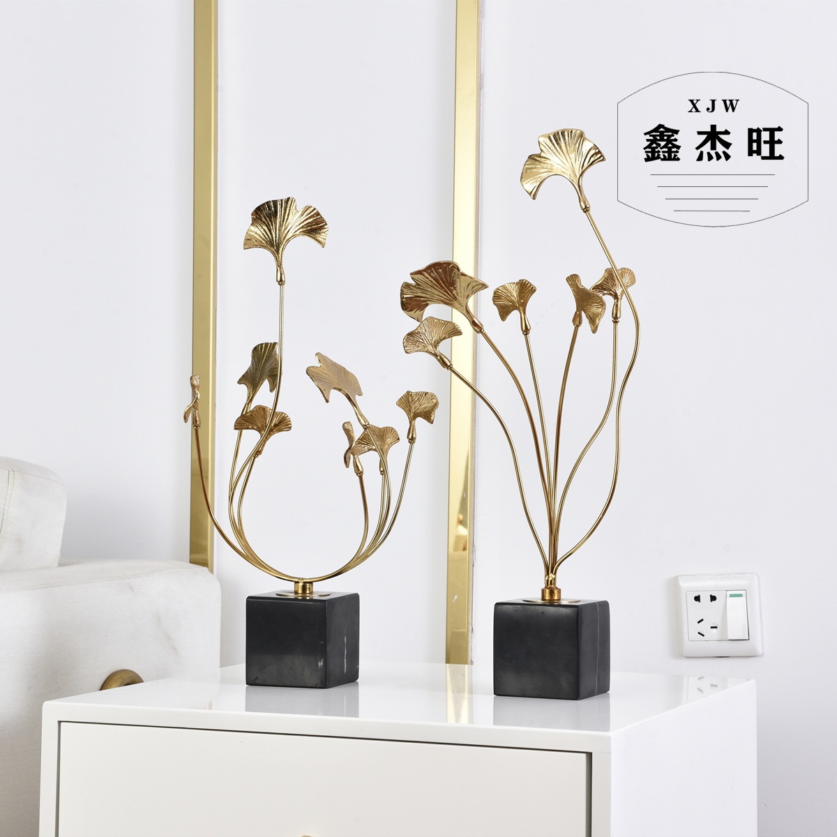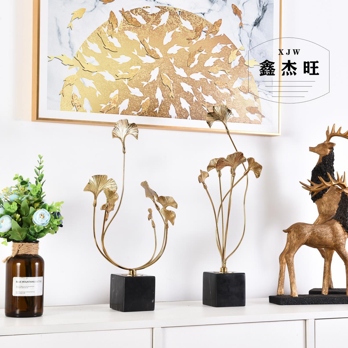Chinese Style Ornaments Model Room Creative Soft Furnishings Living Room Modern Zinc Alloy Ginkgo Leaf Home Ornaments