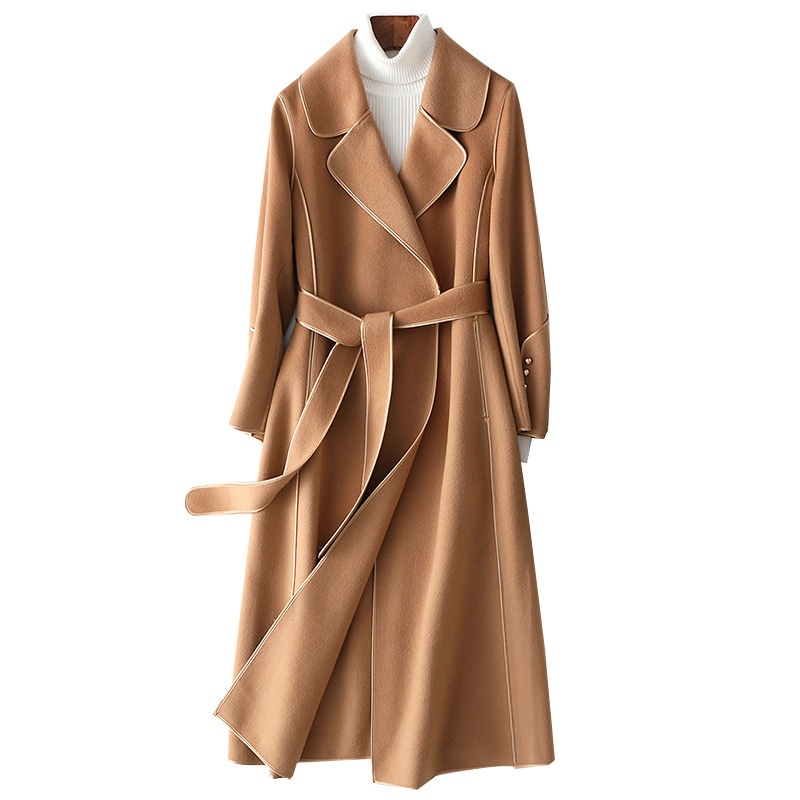 Double-faced Cashmere Coat For Women, Long Slim Fit, Winter Style Fashion Woolen Coat Over Knee High-end One Piece Dery