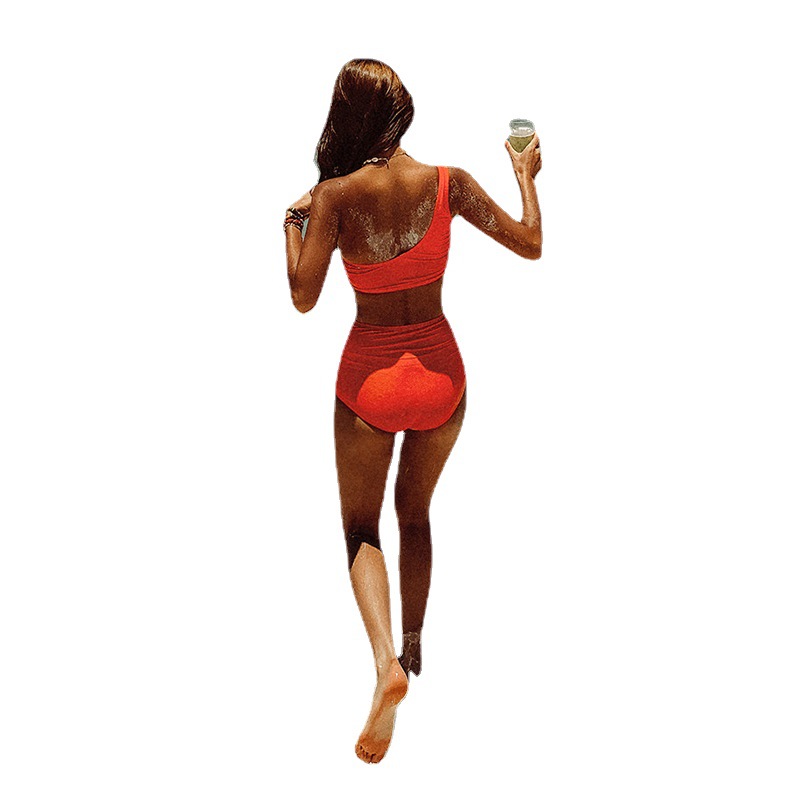 Korean Style One-shoulder Bandeau Sexy Vacation Bikini High Waist Strapped Triangle Split Swimsuit On Behalf Of Korea