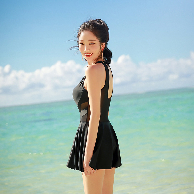 Korea's Retro One-piece High-neck Mesh Swimsuit,Feminine Push-up Bust,Belly-covering,Slimming Spa Swimsuit