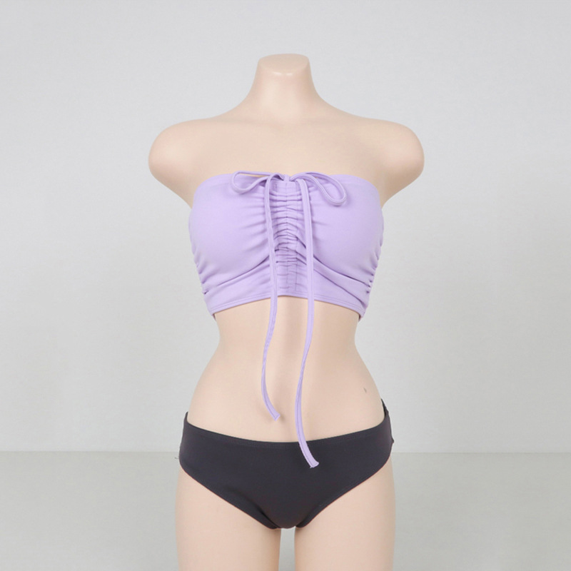 Sweet Tube Top Halter Neck Small Breast Push-up Split Swimsuit Women's Three-point Bikini Hot Spring Swimsuit