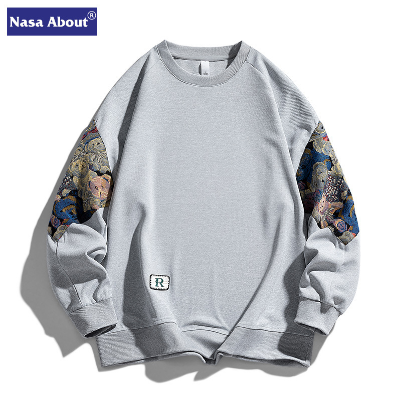 NASAy Brand Casual Splicing Round Neck Sweatshirt For Men And Women Retro Loose Couple Versatile Pullover Top