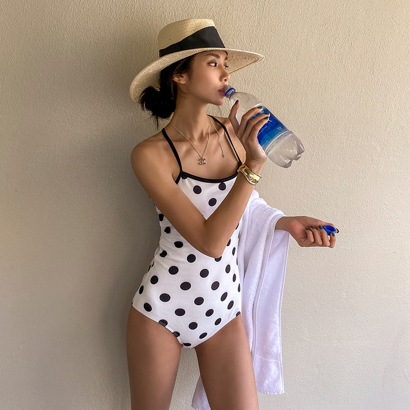 Style Retro Polka Dot Backless Strappy One-piece Swimsuit Korean Fashion Women's Swimwear Style
