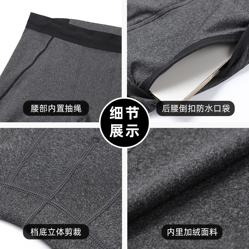 Autumn And Winter Men's Fleece Tight Trousers Running Training Quick-drying Sweat-wicking Fitness Leggings Mobile Phone Pocket Warm Pants