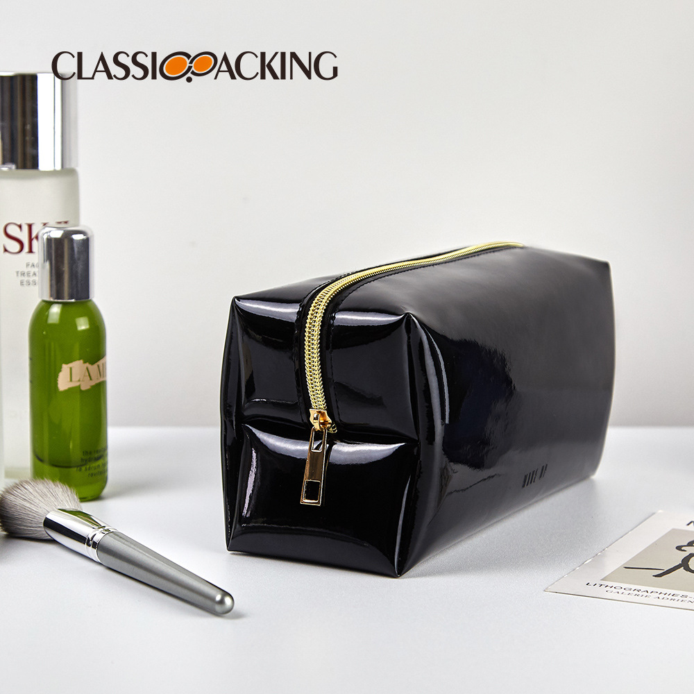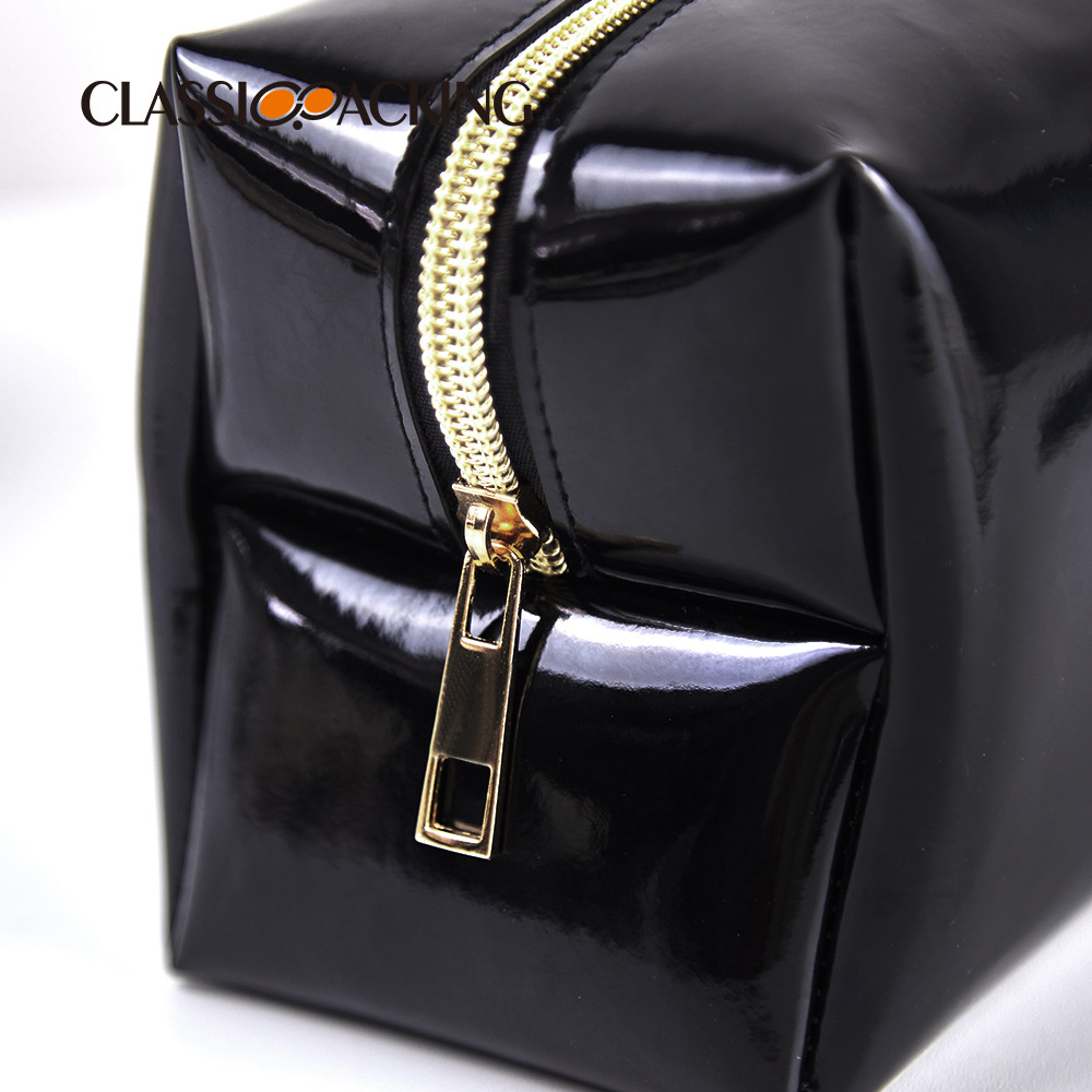Square Black Organizer Bag Wash Zipper Glossy Patent Leather Storage Bag Mirror PVCLeather Waterproof Cosmetic Bag