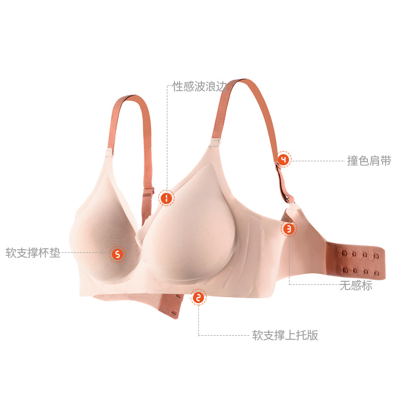 Tangerine Wood Banana Concave Underwear Women's Contrasting Shoulder Strap Bra Seamless Lace Small Chest Gathers Side Breasts Comfortable Women