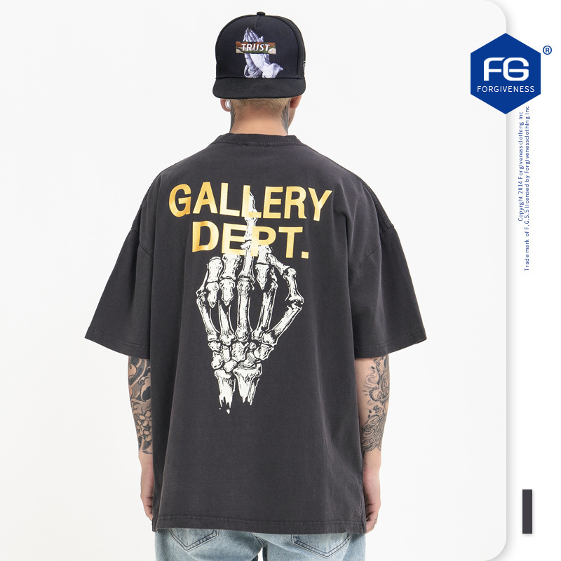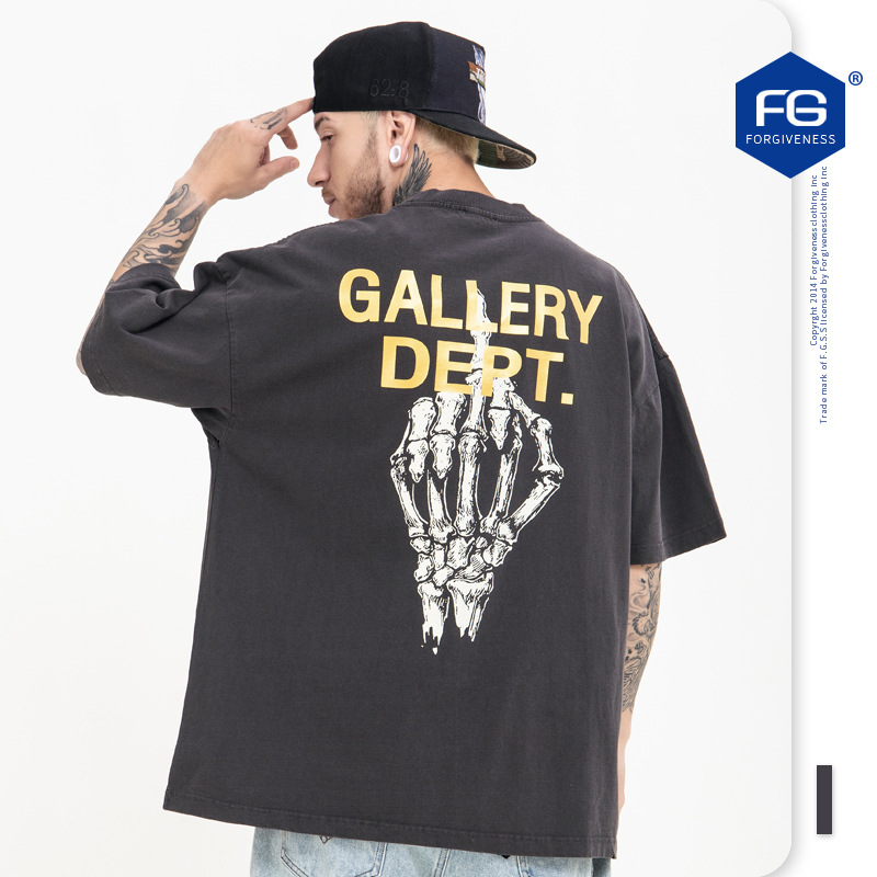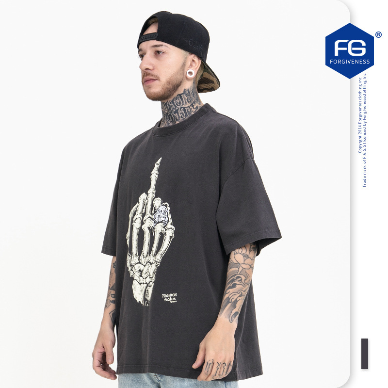 FGMen's Wear|Spring And Summer Fashion Brand High Street Skeleton Hand Bone Print Hip-Hop Loose Round Neck Short-Sleeved T-Shirt For Men