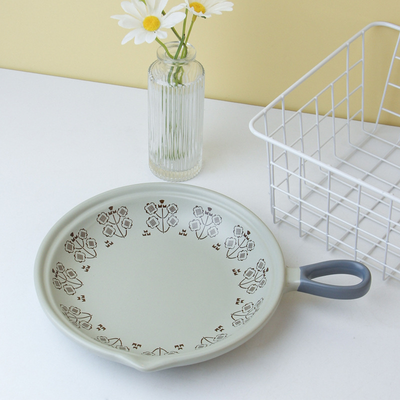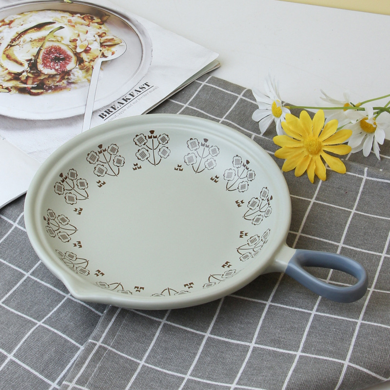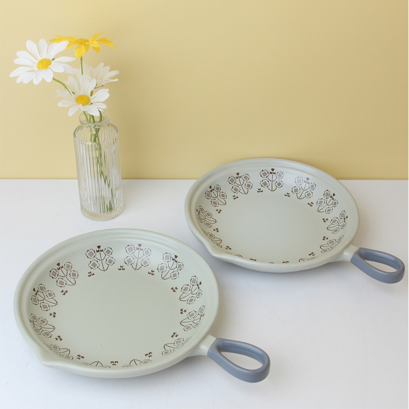 Japanese Simple Breakfast Plate Steak Plate Ceramic Flat Bottom Casserole Open Flame Gas Handle Pot Omelette Pot