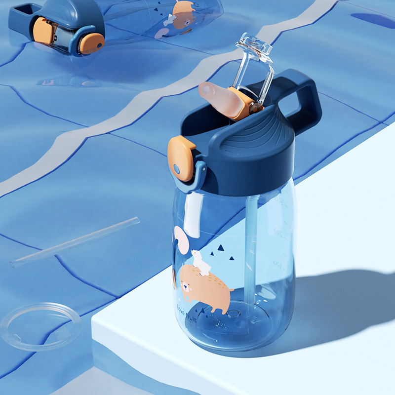 Mico Straw Cup Children's Cartoon Water Cup Creative Duckbill Straw Cup Portable Pop-top Cup Tritan Material