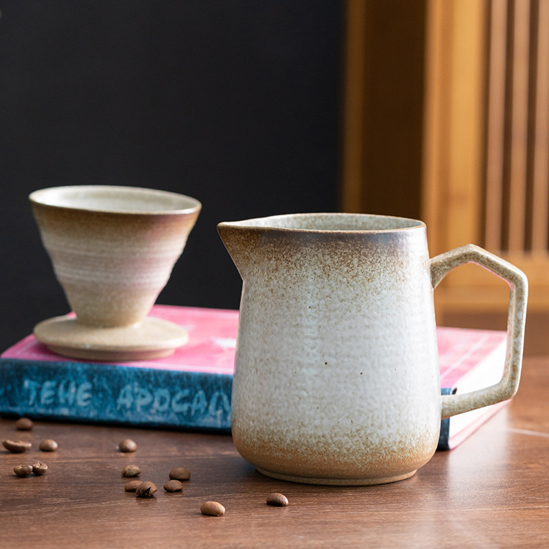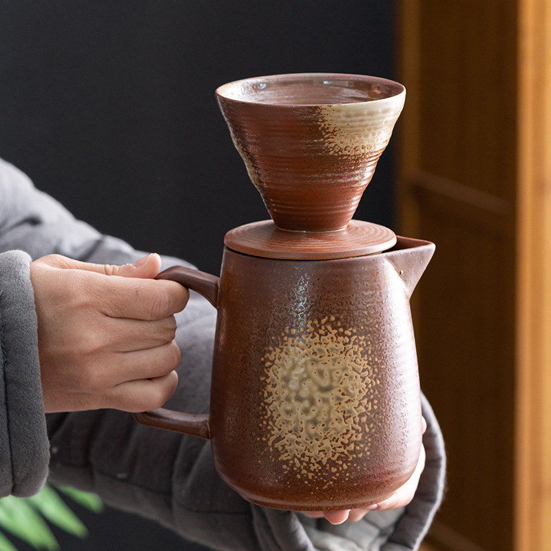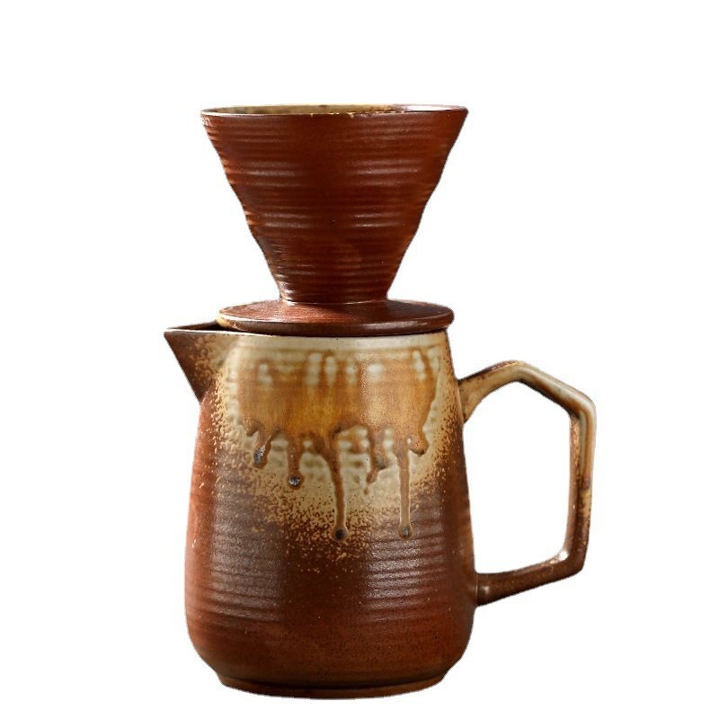 Retro Kiln Coffee Funnel Filter Set Separator Ceramic Gilt Coffee Filter Cup Food Hand Cup