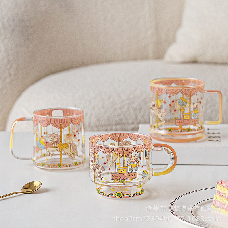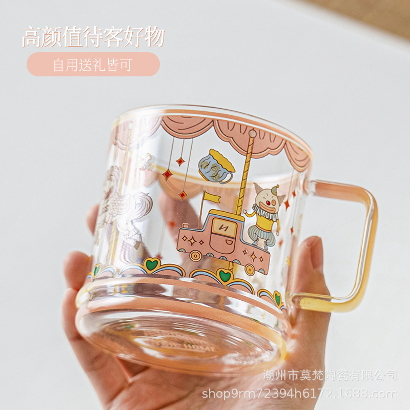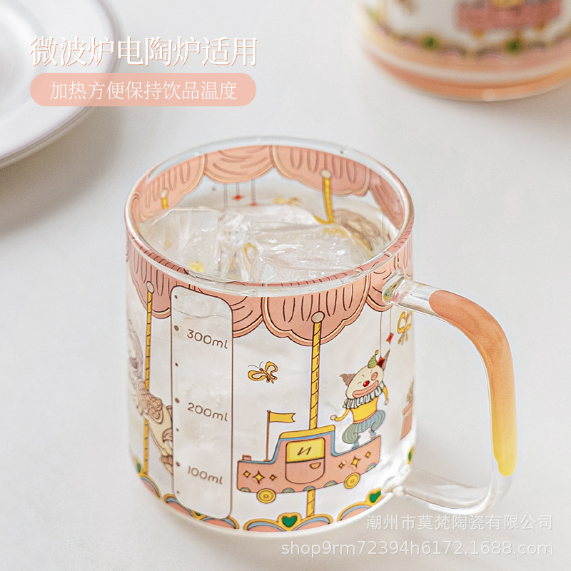 Beautiful Glass Milk Cup Powder System High Borosilicate Heat Resistant Scale Stackable Household Water Cup Coffee Cup