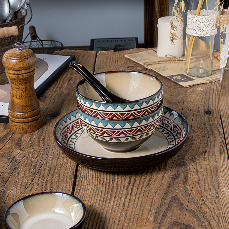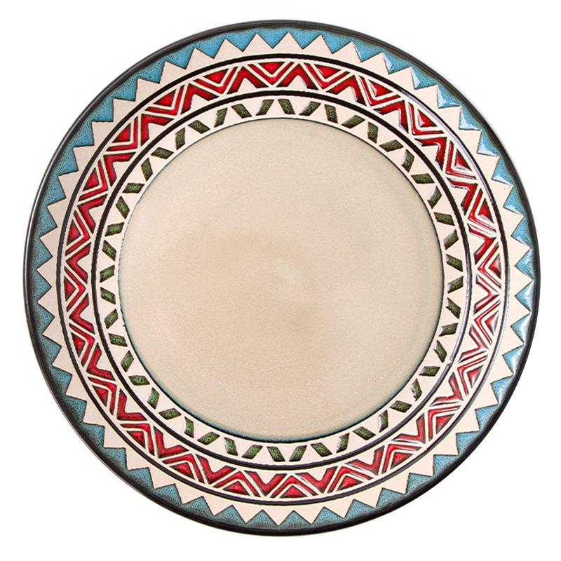 European Style Creative Tableware Ceramic Retro Plate Underglaze Color Dinner Plate High-value Household Dish Plate Rice Bowl Pasta Plate