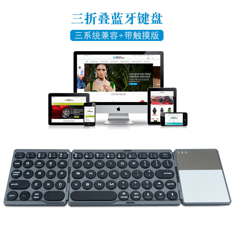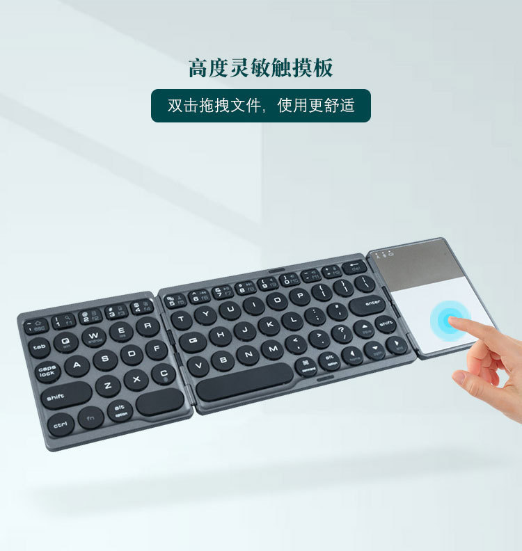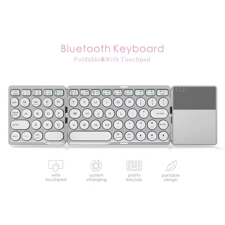 BT86 Retro Round Touch Bluetooth Keyboard Three System Universal Folding Keyboard Portable Mini Wireless Keyboard