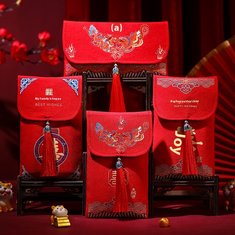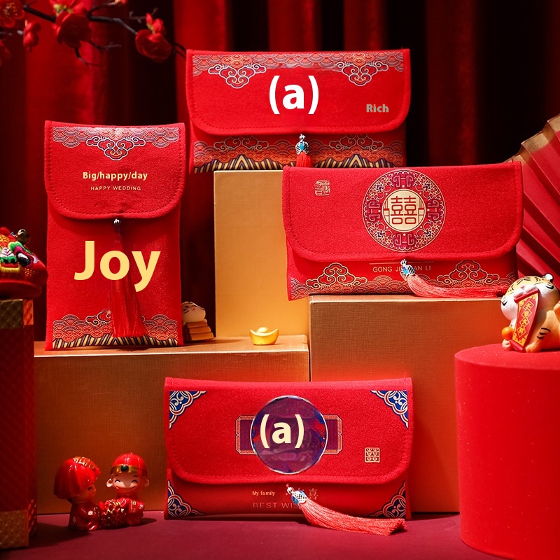 Wedding10,000 Yuan Cloth Red Envelope Wedding Supplies Creative Happy Word Red Envelope Bag Tea Ceremony Changed To Return Gift Red Envelope