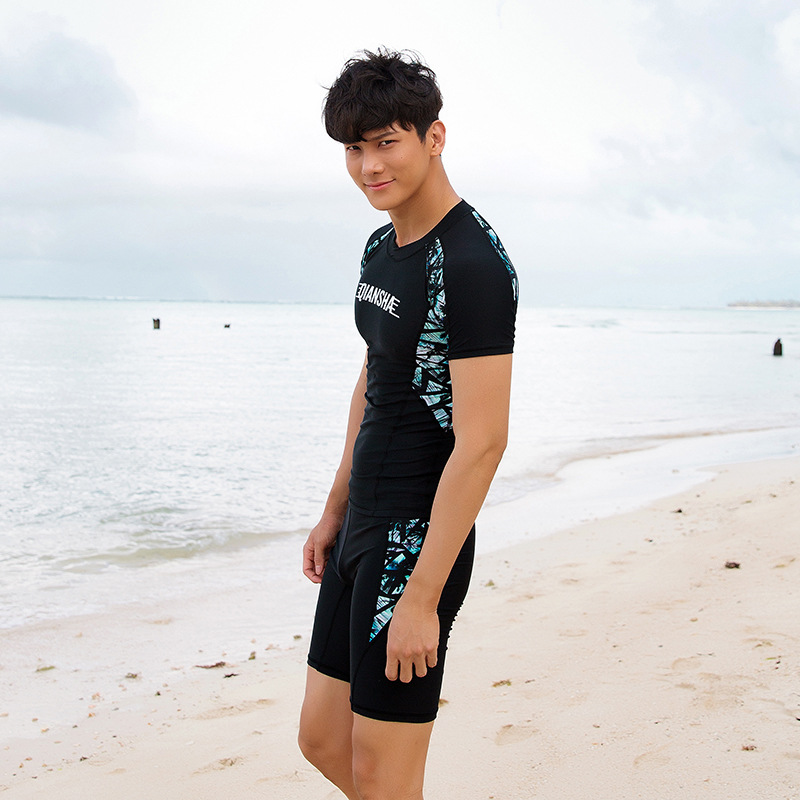 Split Swimsuit Men's Short-sleeved Tops Five-piece Swimming Trunks Men's Hot Spring Swimsuit Suit